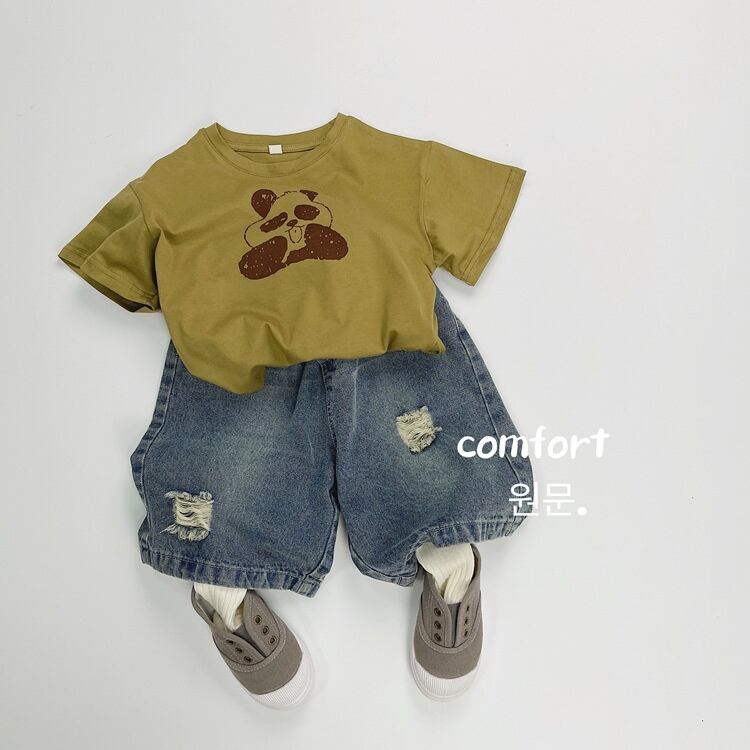 • 【90-140】夏作半袖カートゥーン ペンギンTシャツ