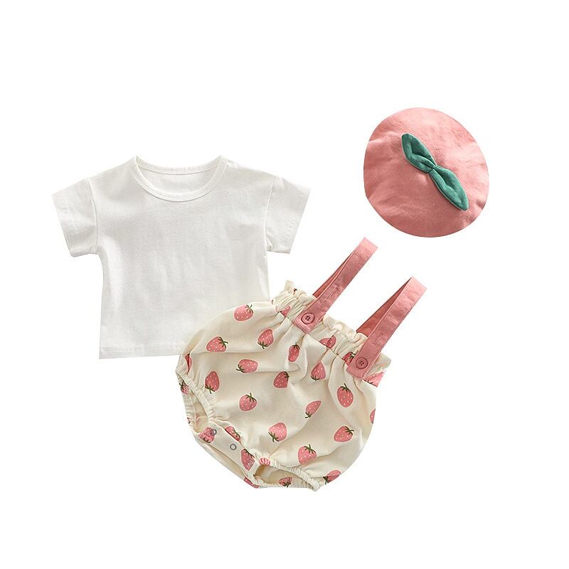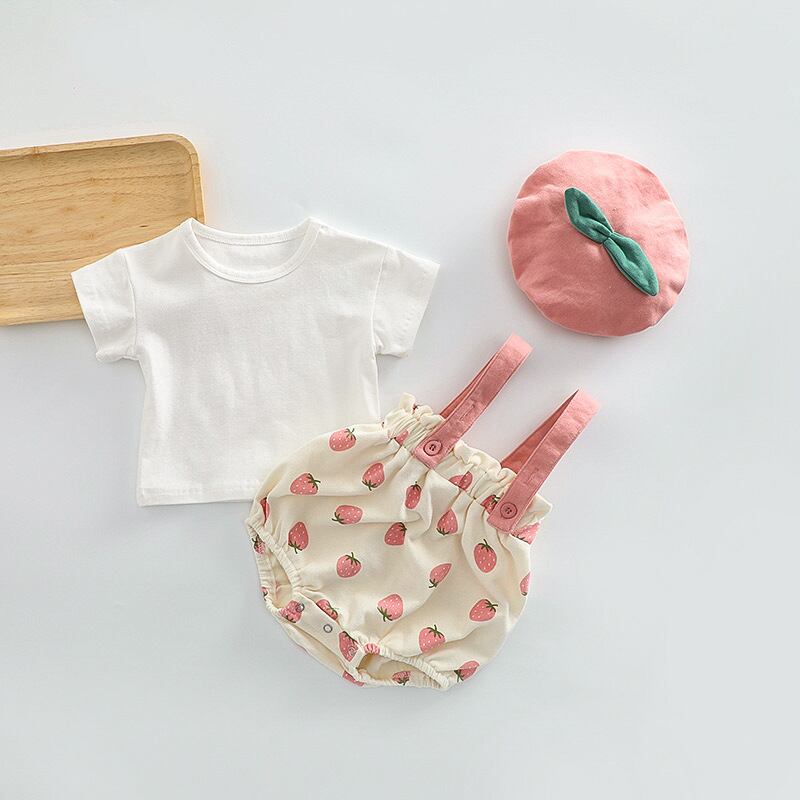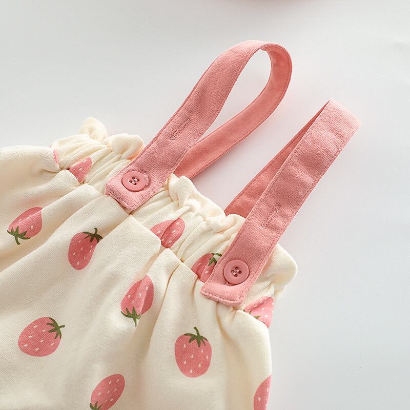 【夏作】帽子付きイチゴプリントロンパース