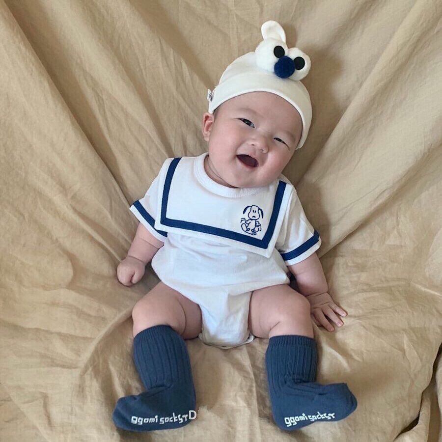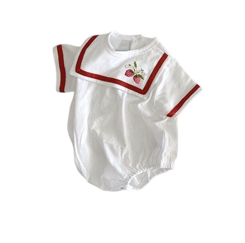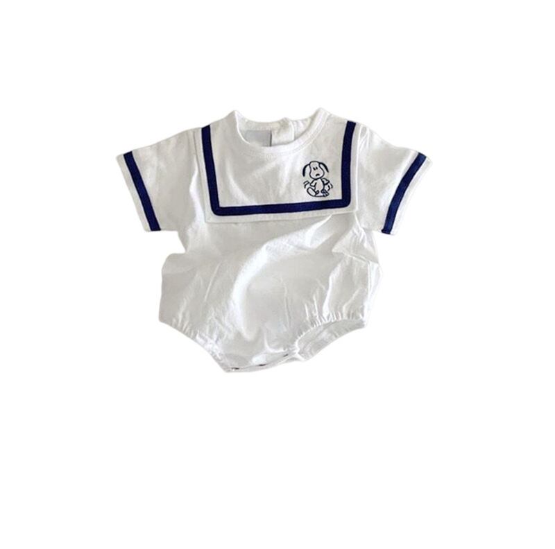 • 【66-90】春作丸襟セーラー風 ロンパース