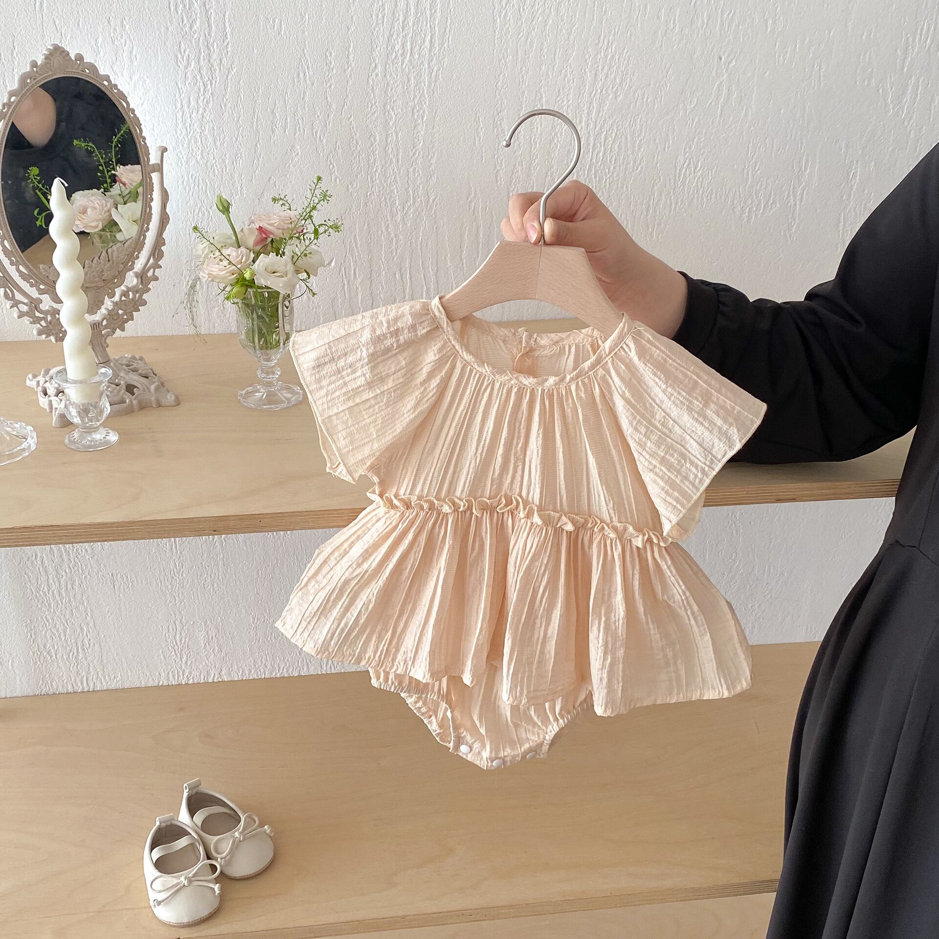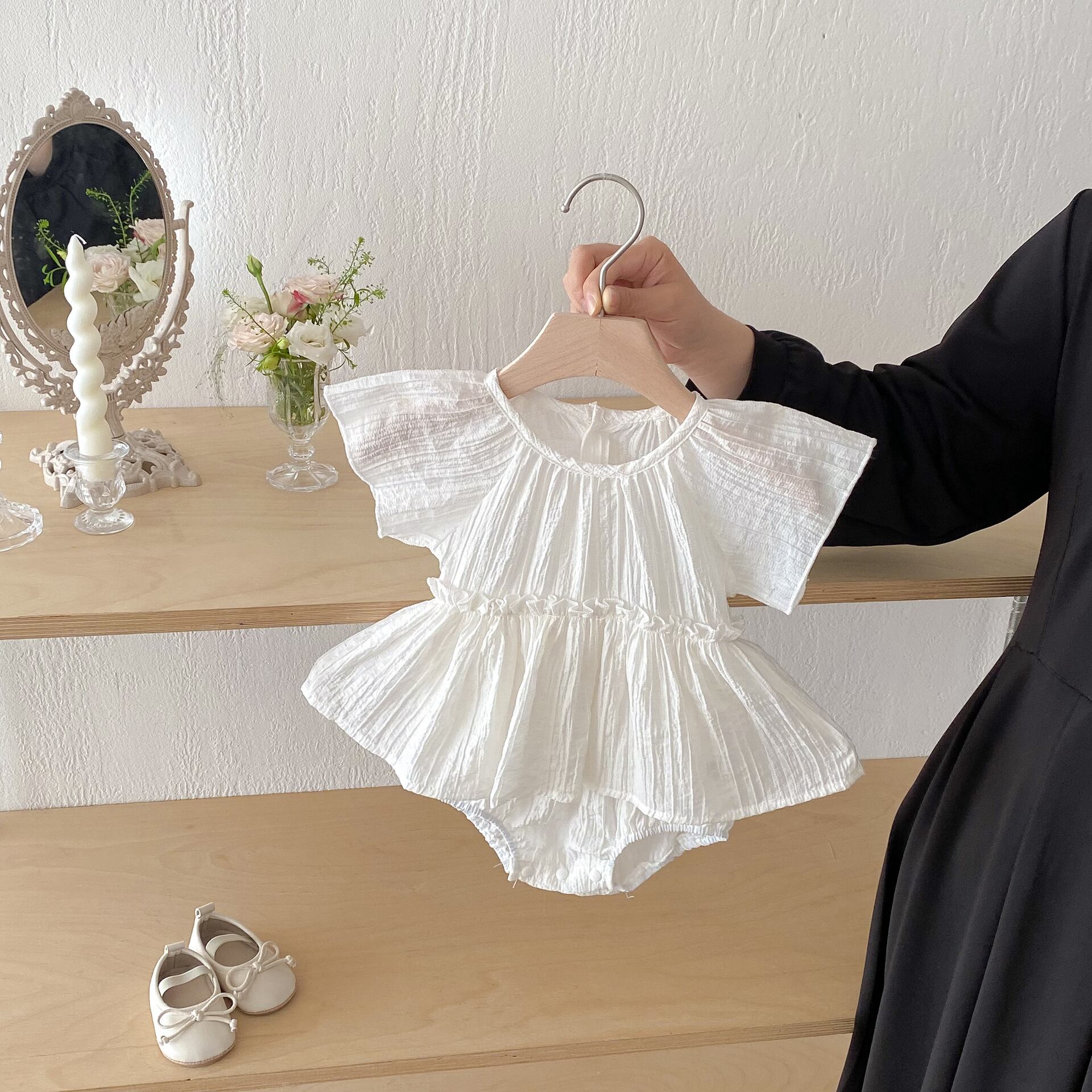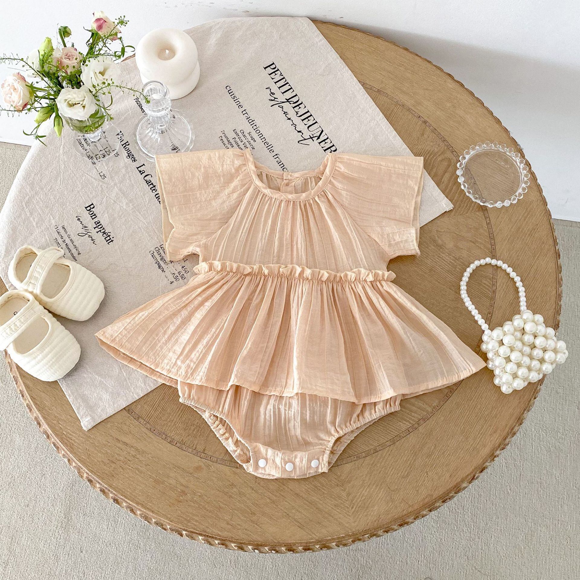 【夏作】ノーカラーワンピース風ロンパース 全2色
