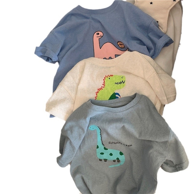 • 【春作】恐竜柄シンプルロンパース 全2色
