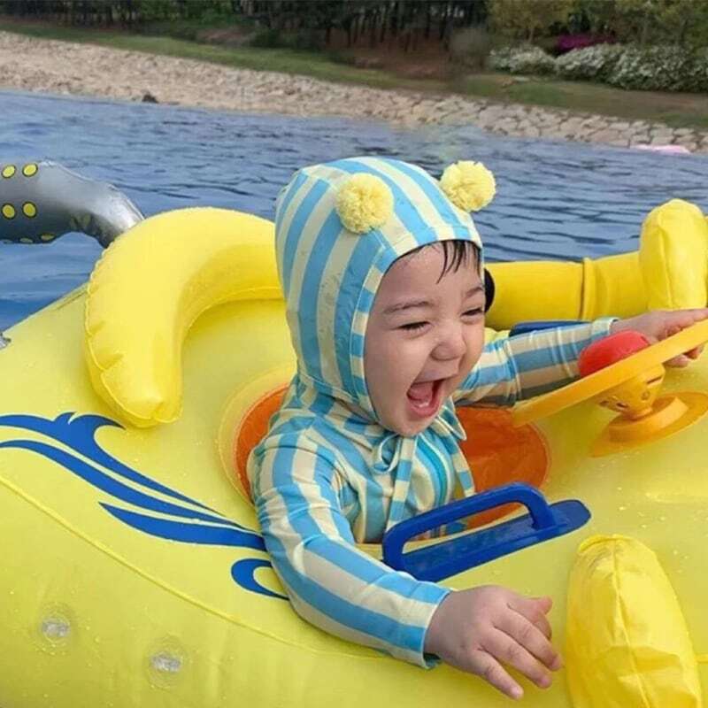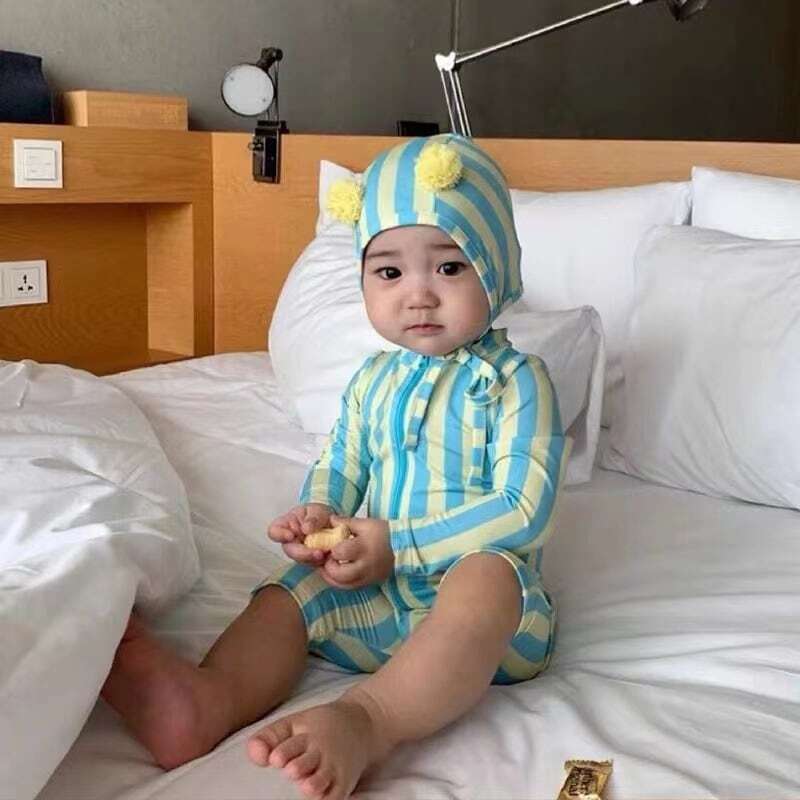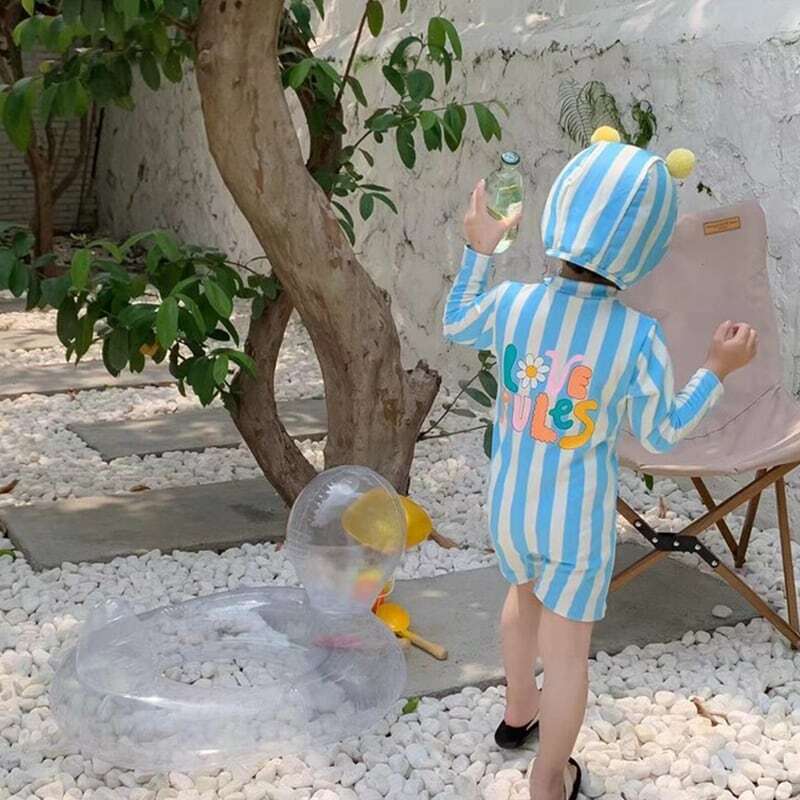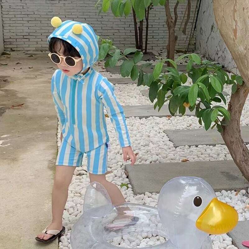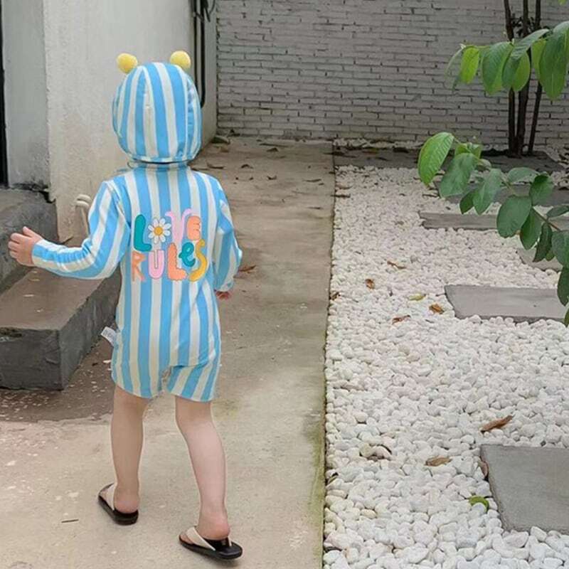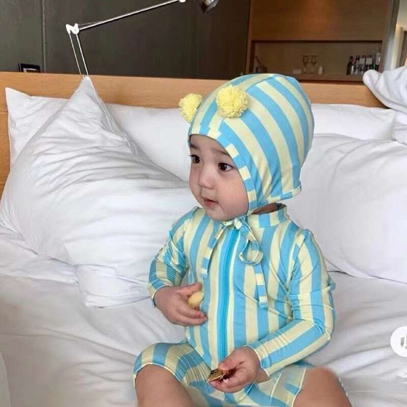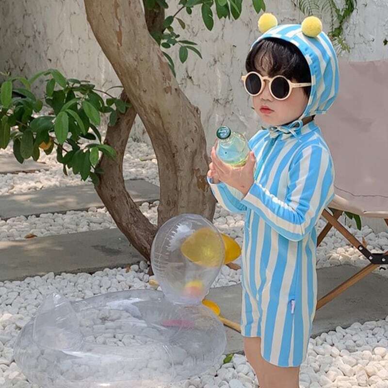 【夏作】帽子付きストライプスイムウェア
