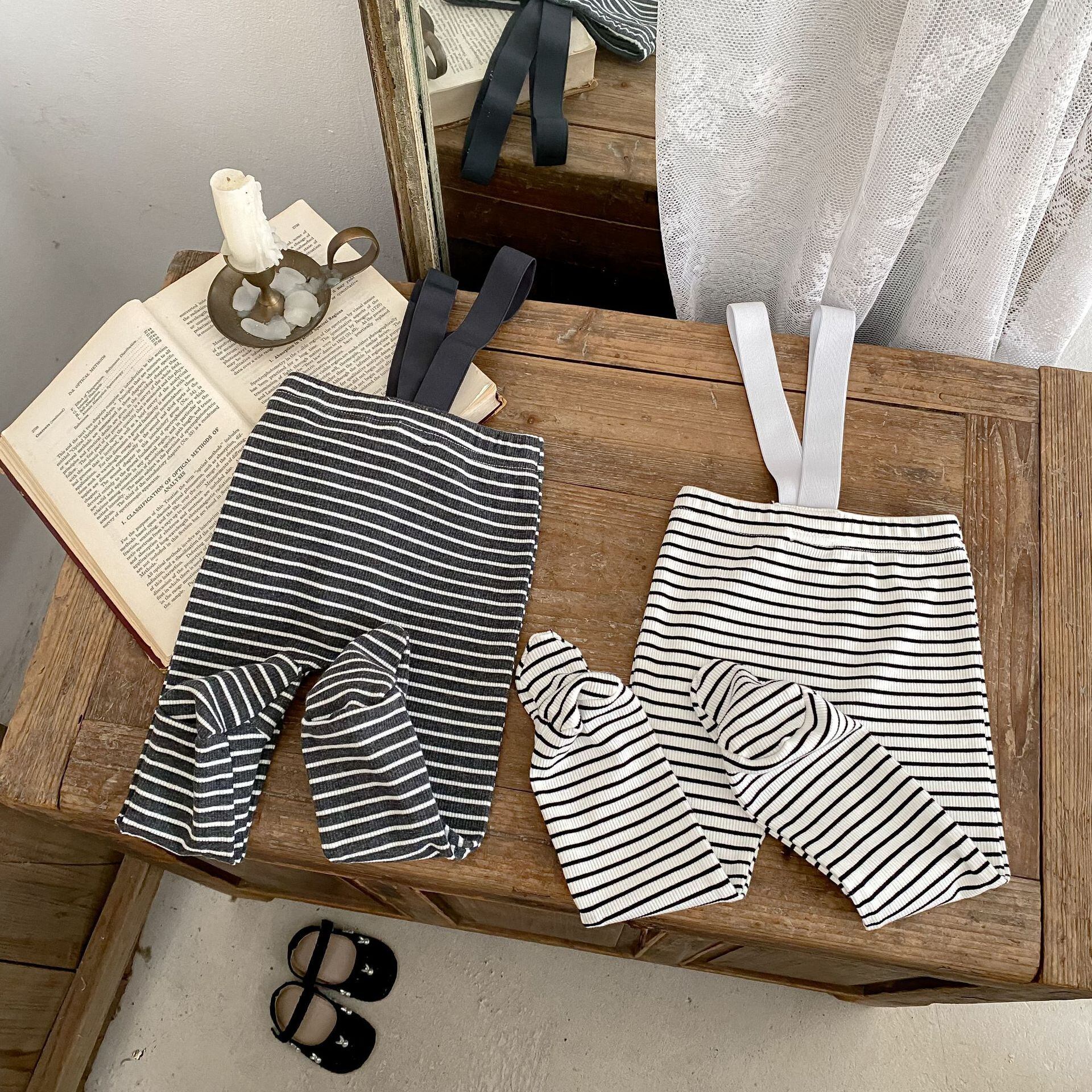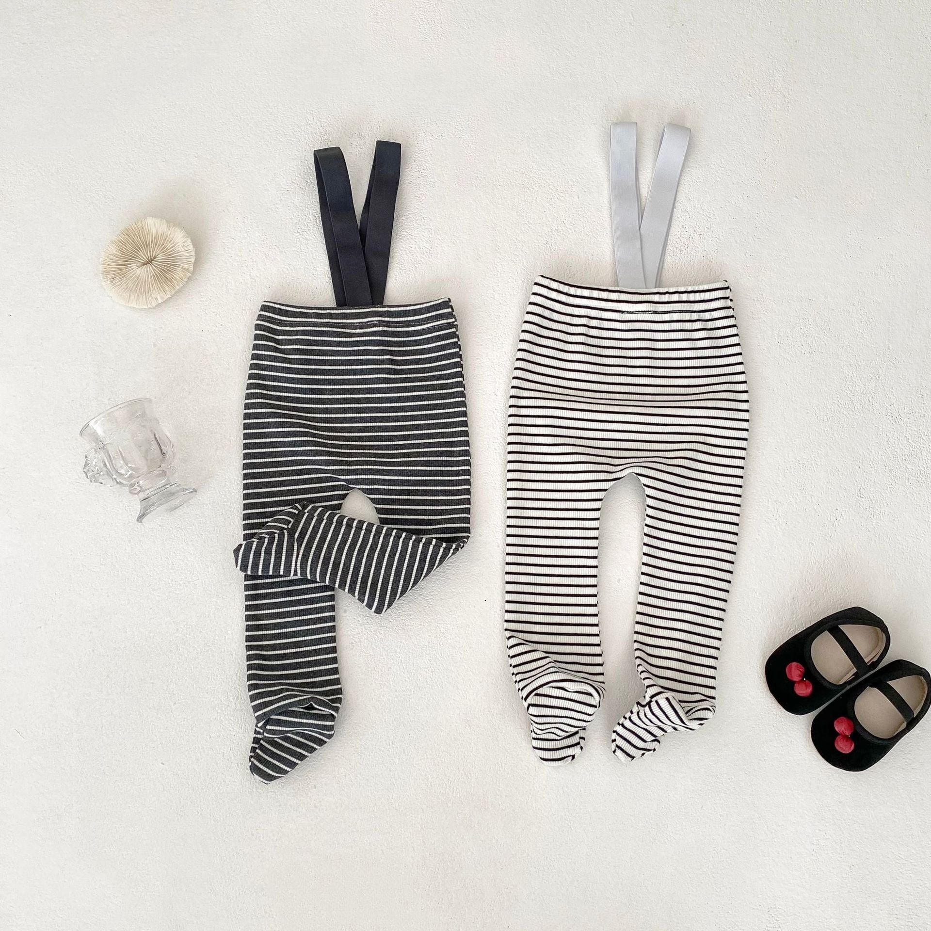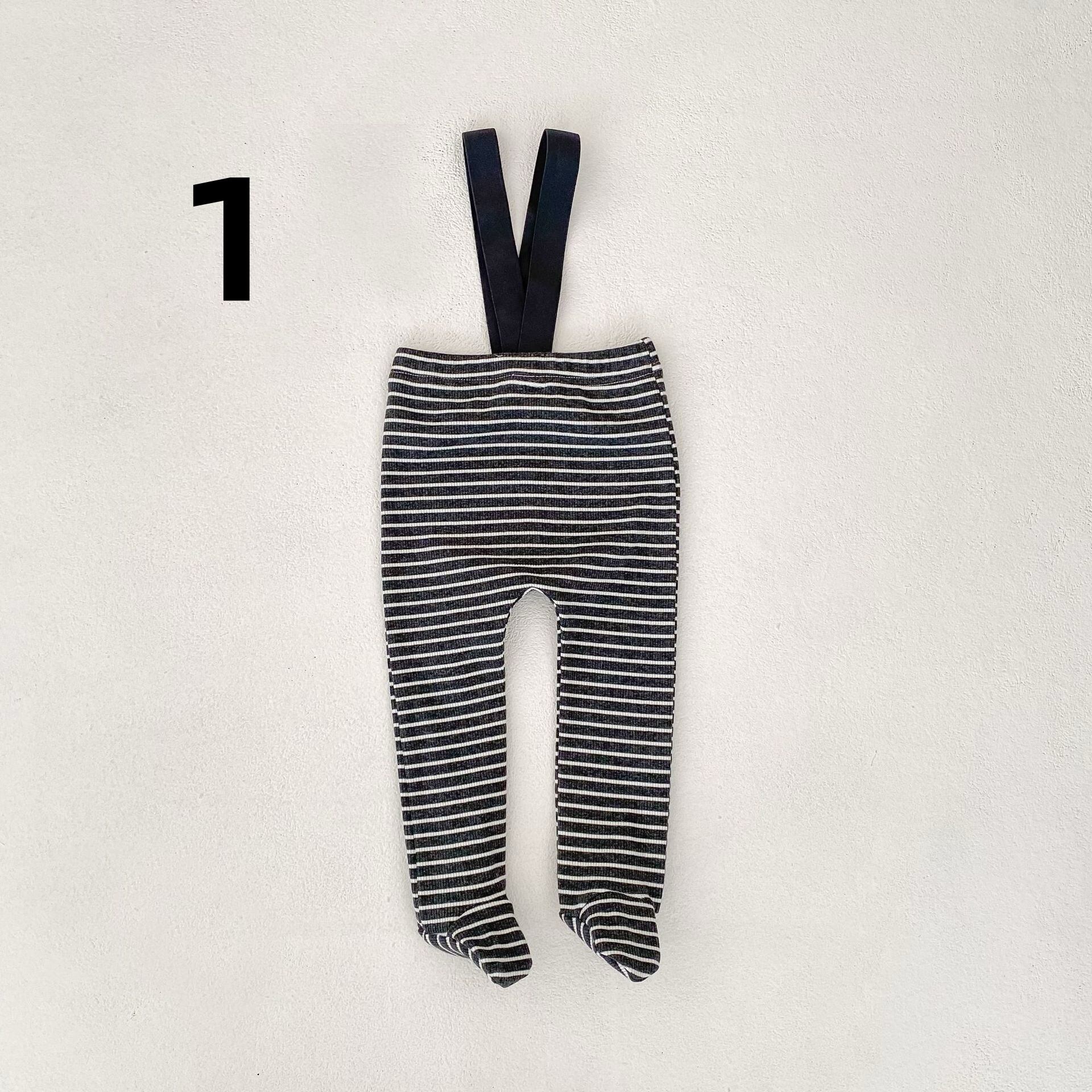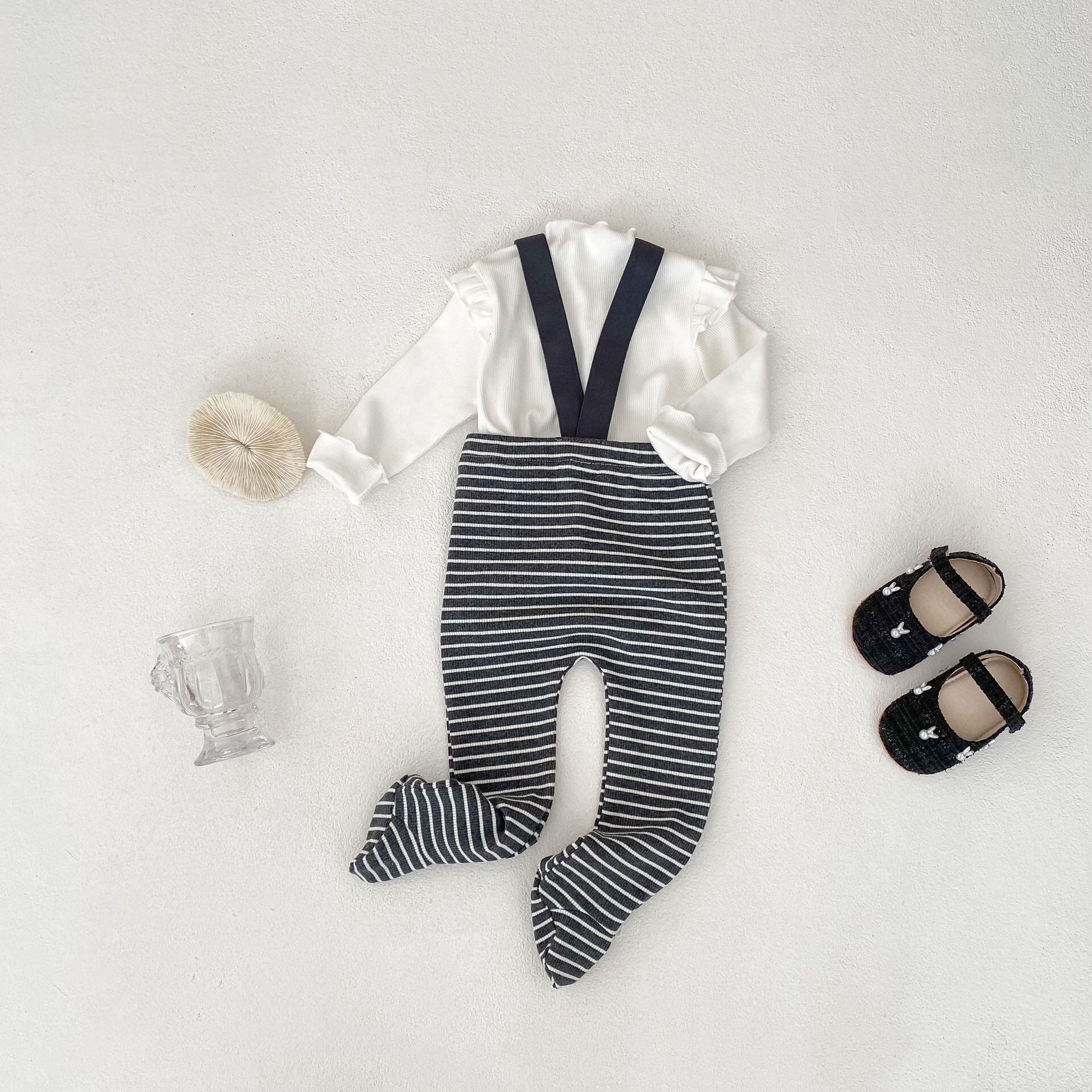 • 【秋作】フード付きボーダートップス&サロペット2点セット