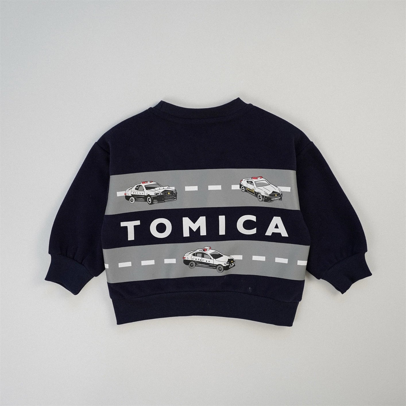 【秋作】カラー切り替え車プリントトレーナー