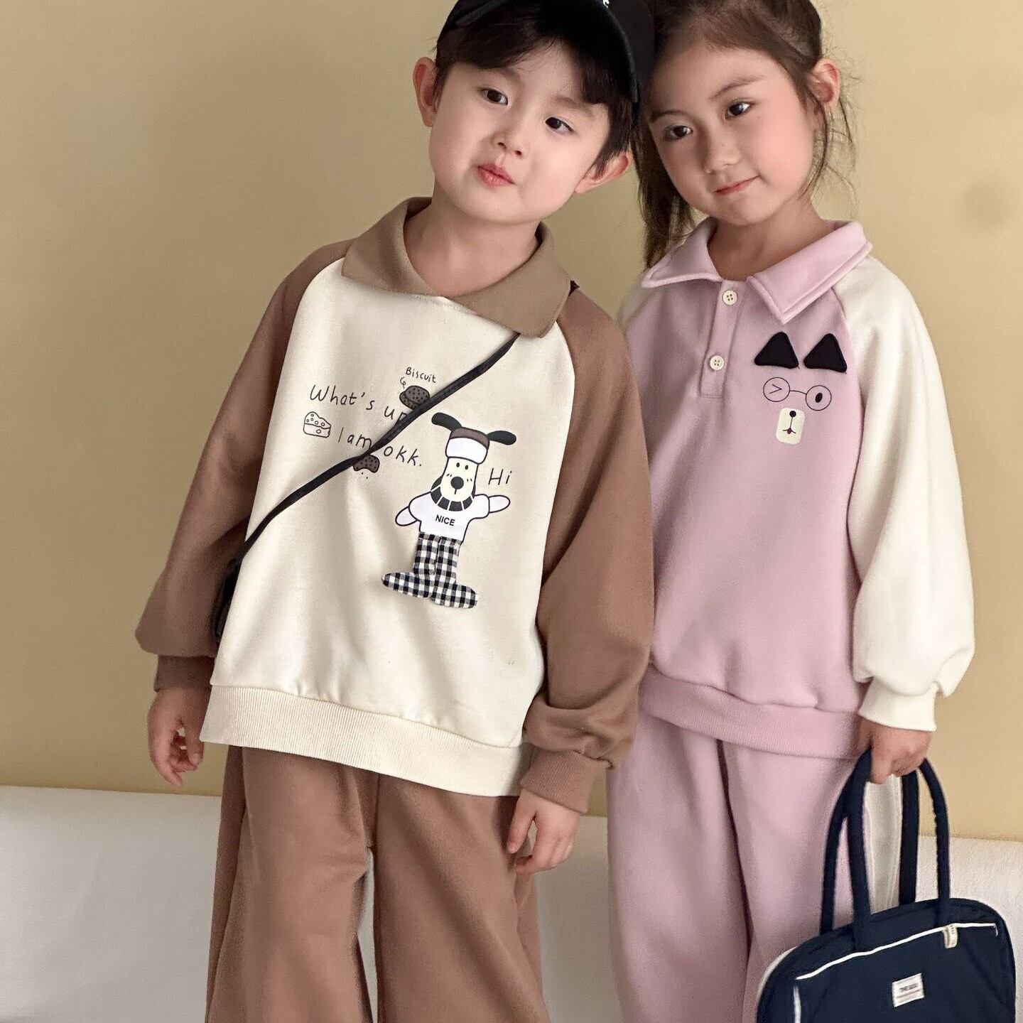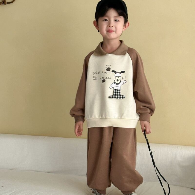 【秋作】バイカラーカートゥーンカジュアルセットアップ