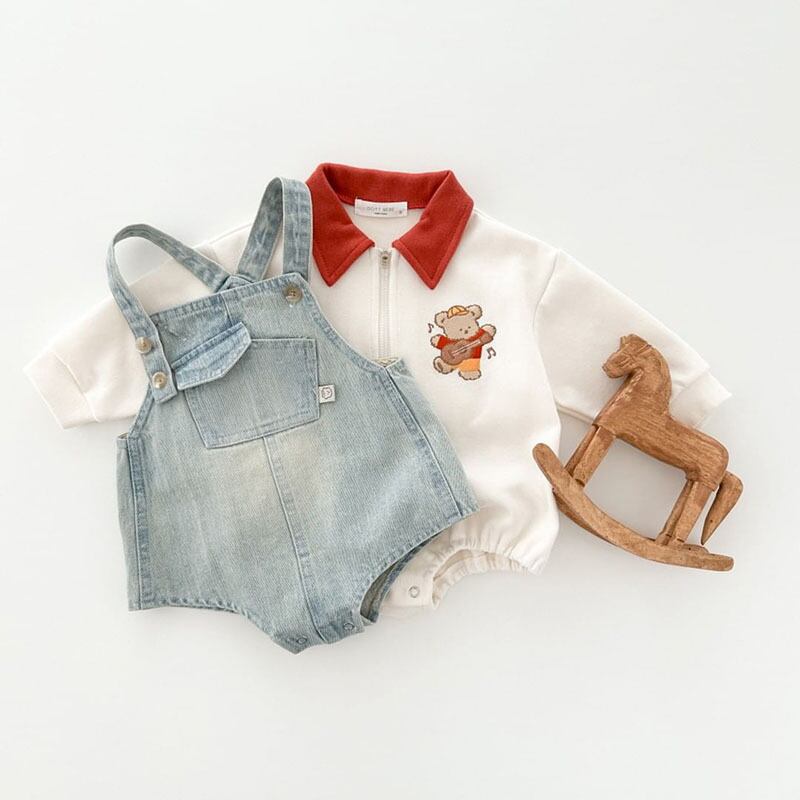 • 【秋作】バイカラーロンパース