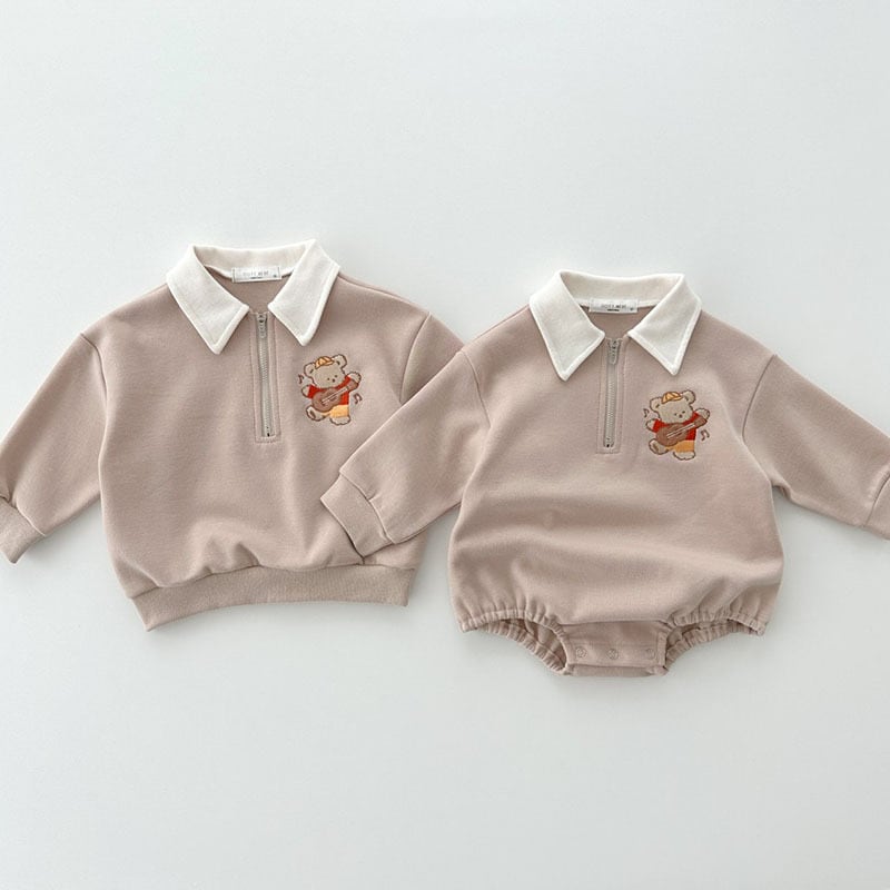 【秋作】熊柄ロンパース