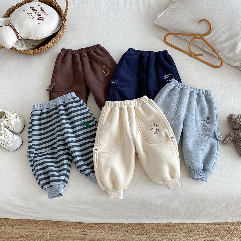 【冬作】ボーダーorノーカラーカジュアルボア付きパンツ