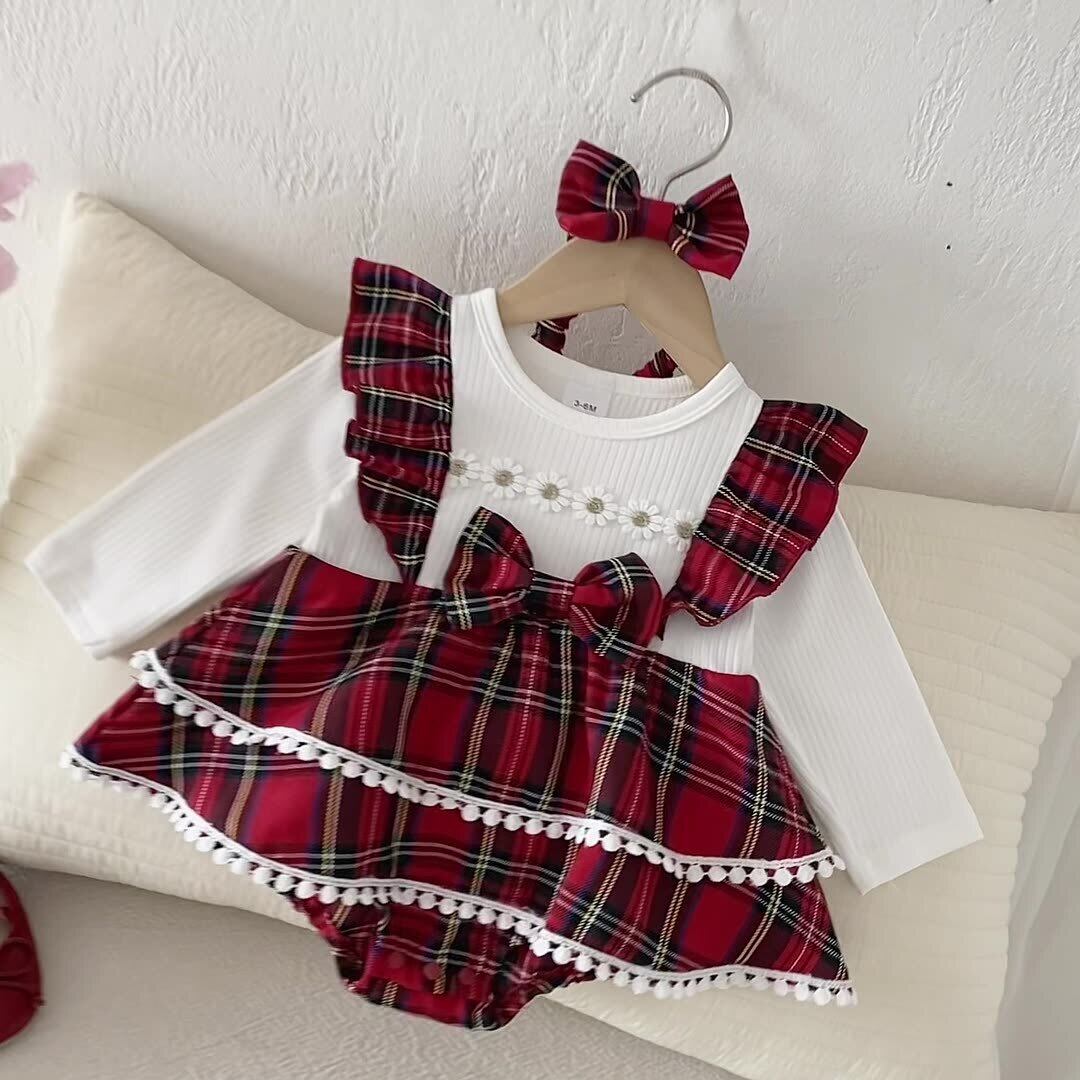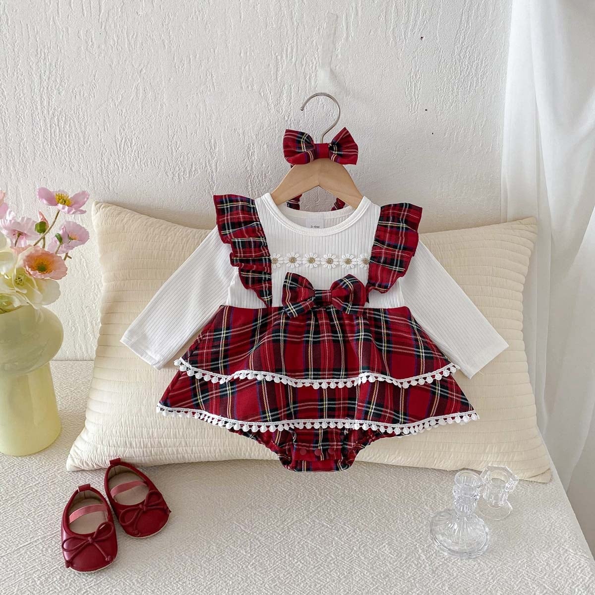 【冬作】バンド付きクリスマスフェイクヤードデイジーロンパース