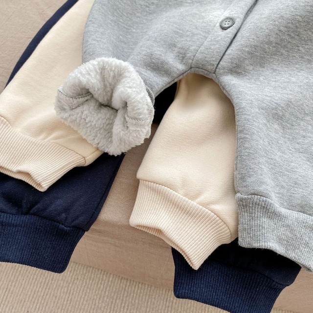 【冬作】英字柄ボアオールインワン