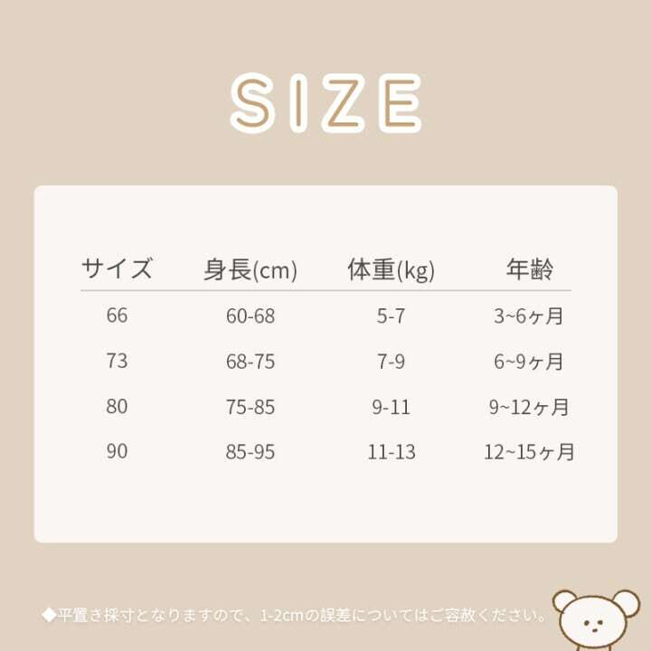 ★メイン素材:コットン ★サイズ:59/66/73/80/90cm 【ご購入前に必ずご一読ください】 https://www.yababyshop.com/about ・発送-到着目安:3-14日間ほど ・サイズは平置きサイズとなりますので測り方により誤差が出る場合がございます。 ・複数購入の場合、どちらかが在庫切れになった場合でも不良品または在庫切れ以外の商品のキャンセル・返金は出来かねますのでご了承下さい。 ・お取り寄せ先の状況によっては、在庫を確保できない場合がございますので予めご了承ください。 ・ご覧頂いている商品の写真につきましては、できるだけ実物の色に近くなるように努めておりますが、お使いの環境(モニター、ブラウザ等)の違いにより、色の見え方が実物と若干異なる場合がございます、予めご了承ください。 ※Instagram: yababy.shop 弊店のInstagram accountをフォローして頂ければ、 お得な情報やクーポンを定期的に配信させて頂きます。 ※7500円以上のお買い上げで国内送料(沖縄以外)が無料になりますが、沖縄エリアの送料は無料になる場合は、下記のリンクから追加送料をご注文お願い致します。 https://www.yababyshop.com/items/78708105 もし追加送料をご注文していない場合は、商品を発送することができません。予めご了承ください。