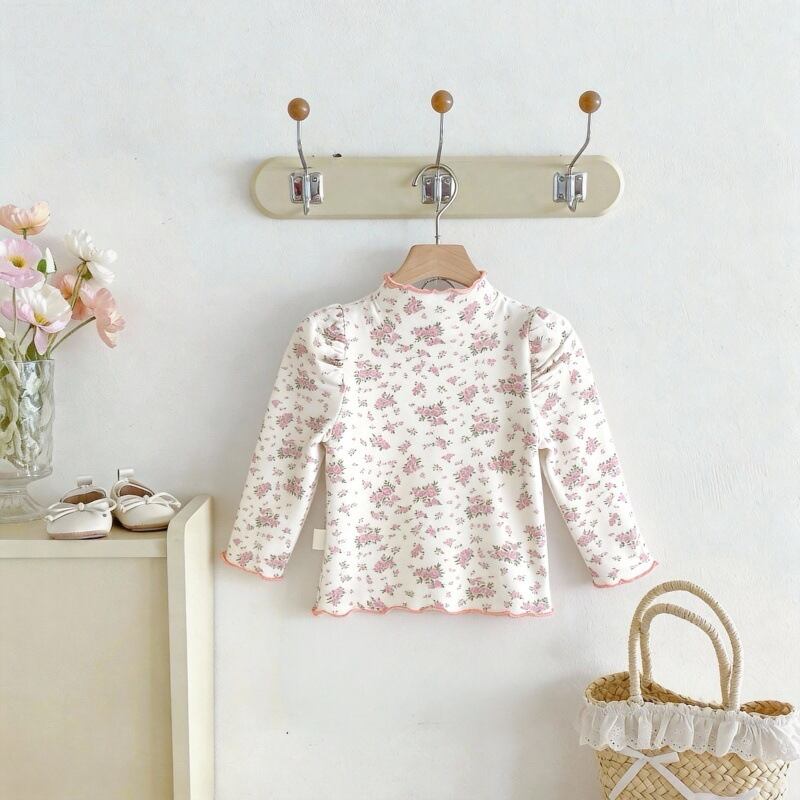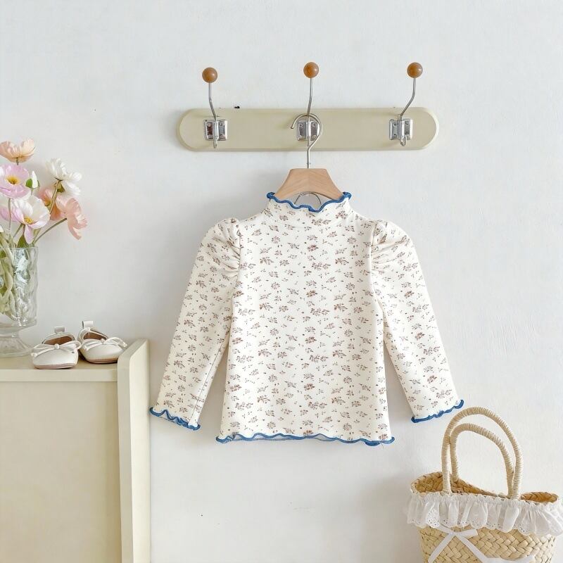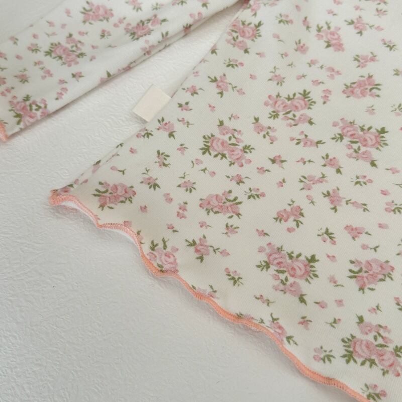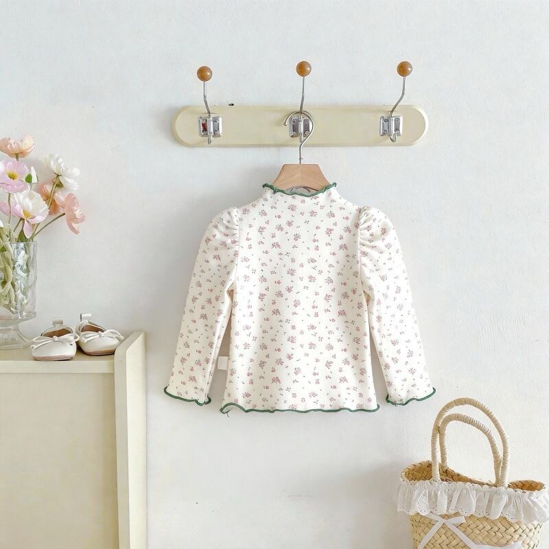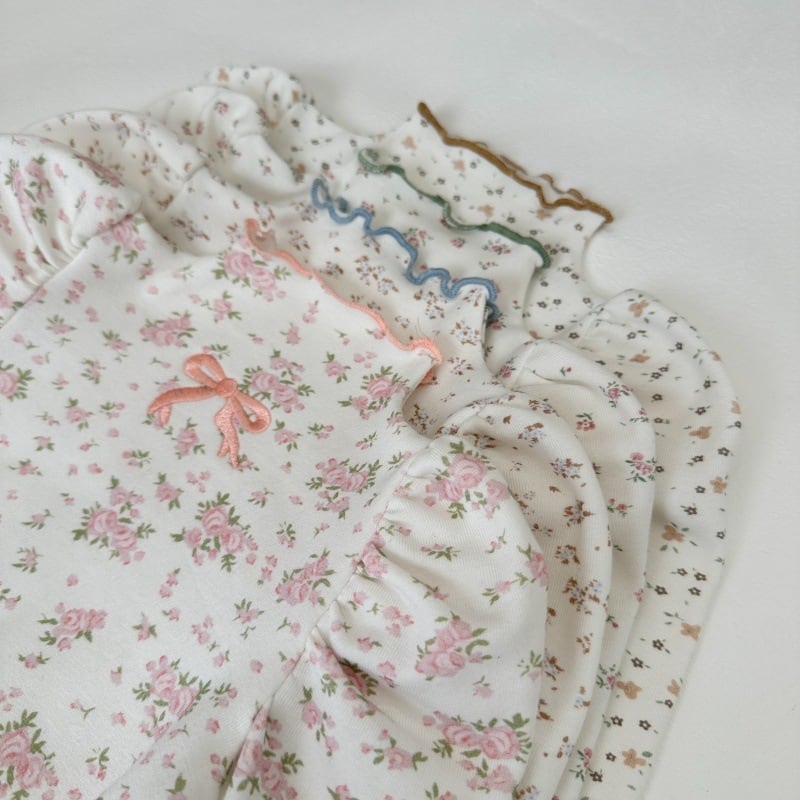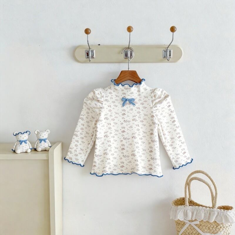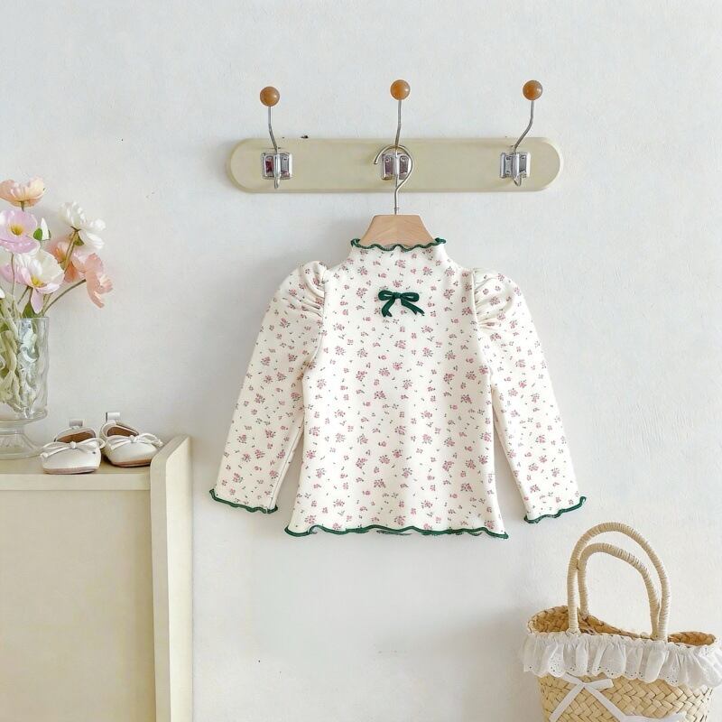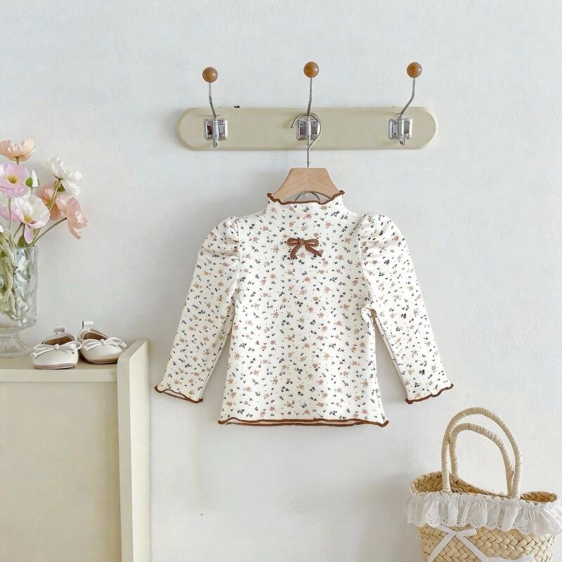 【春作】韓国風小花柄リボンシャツ
