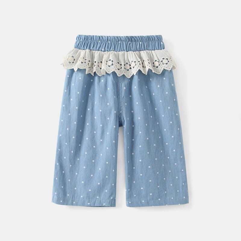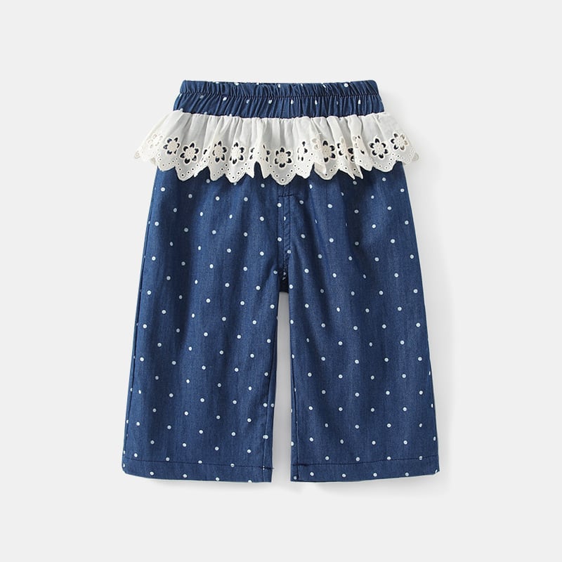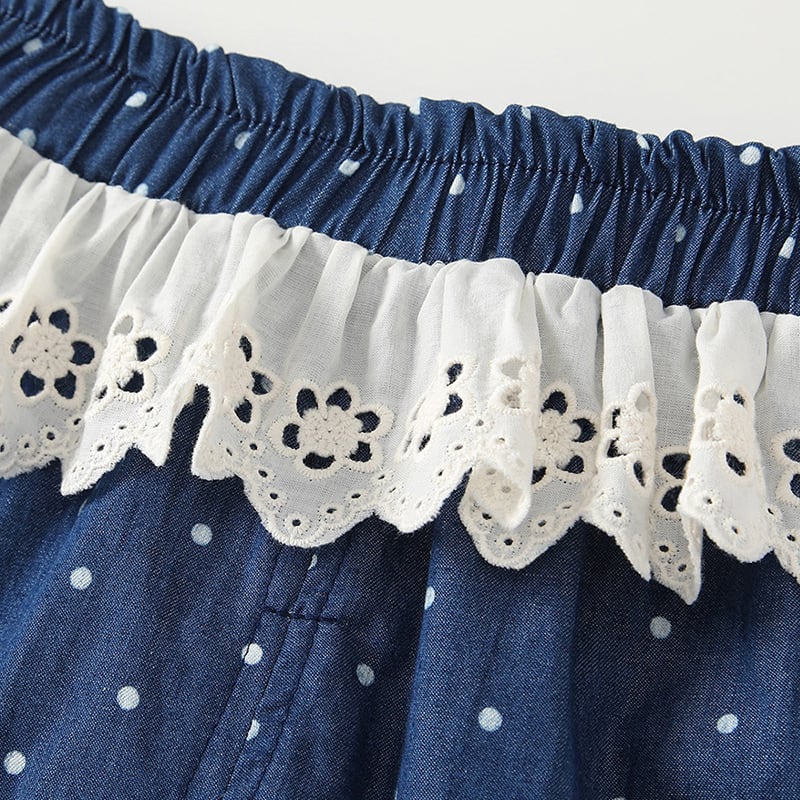【春作】フリルドットデニムパンツ