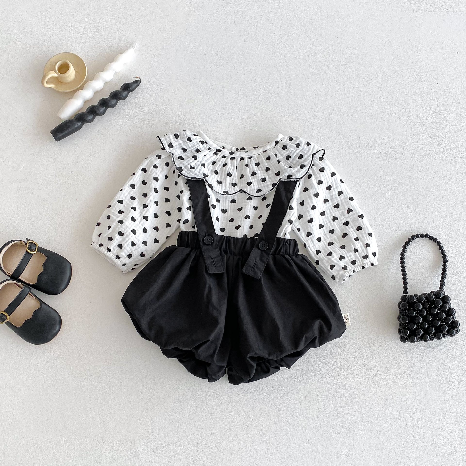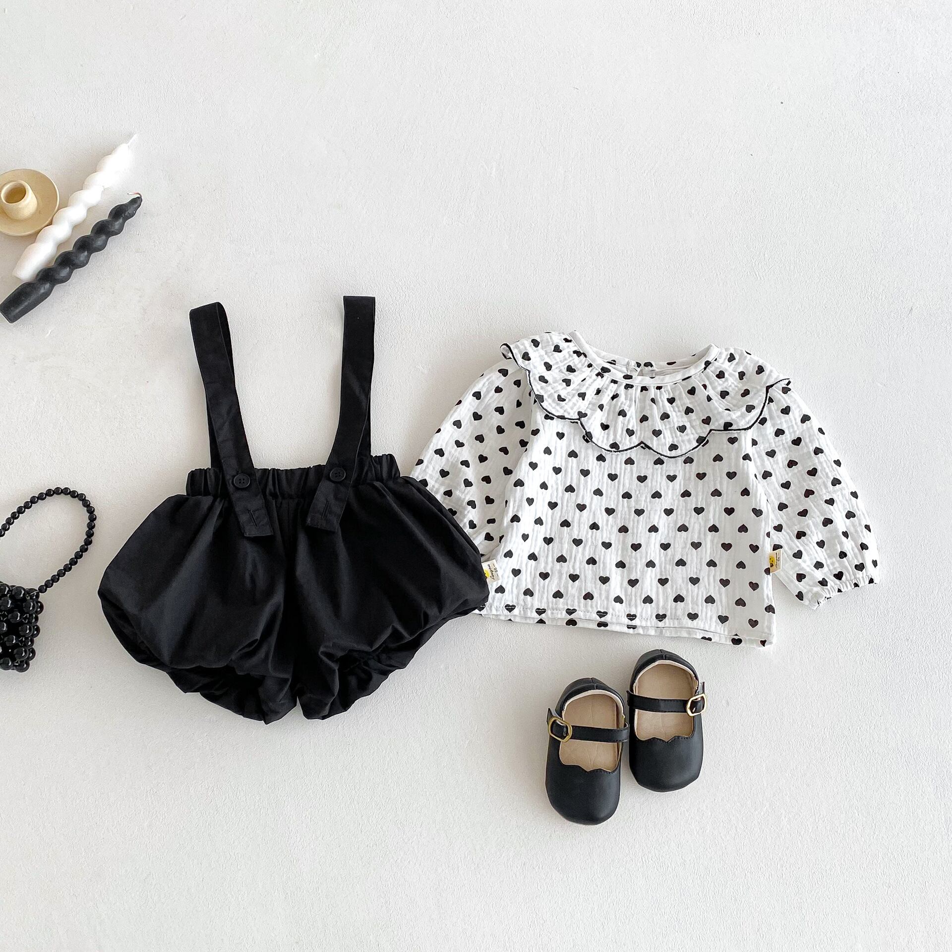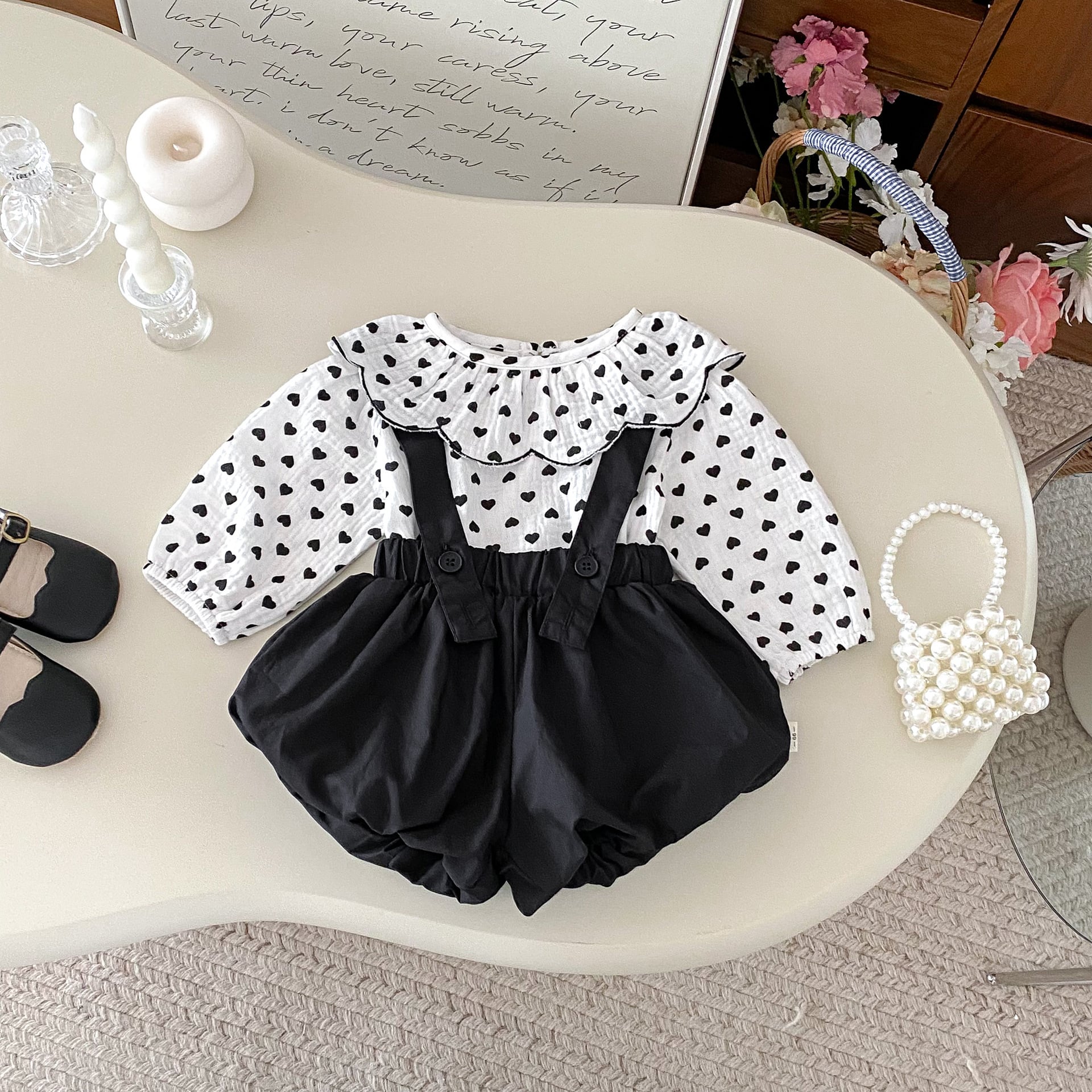 【春作】フリル襟ドット シャツ or サロペット 2点セット