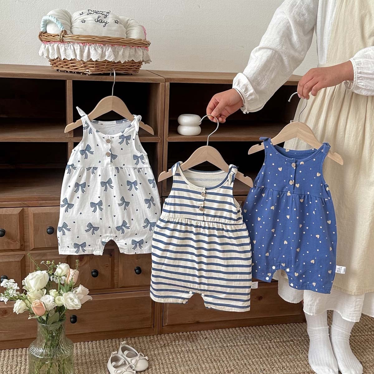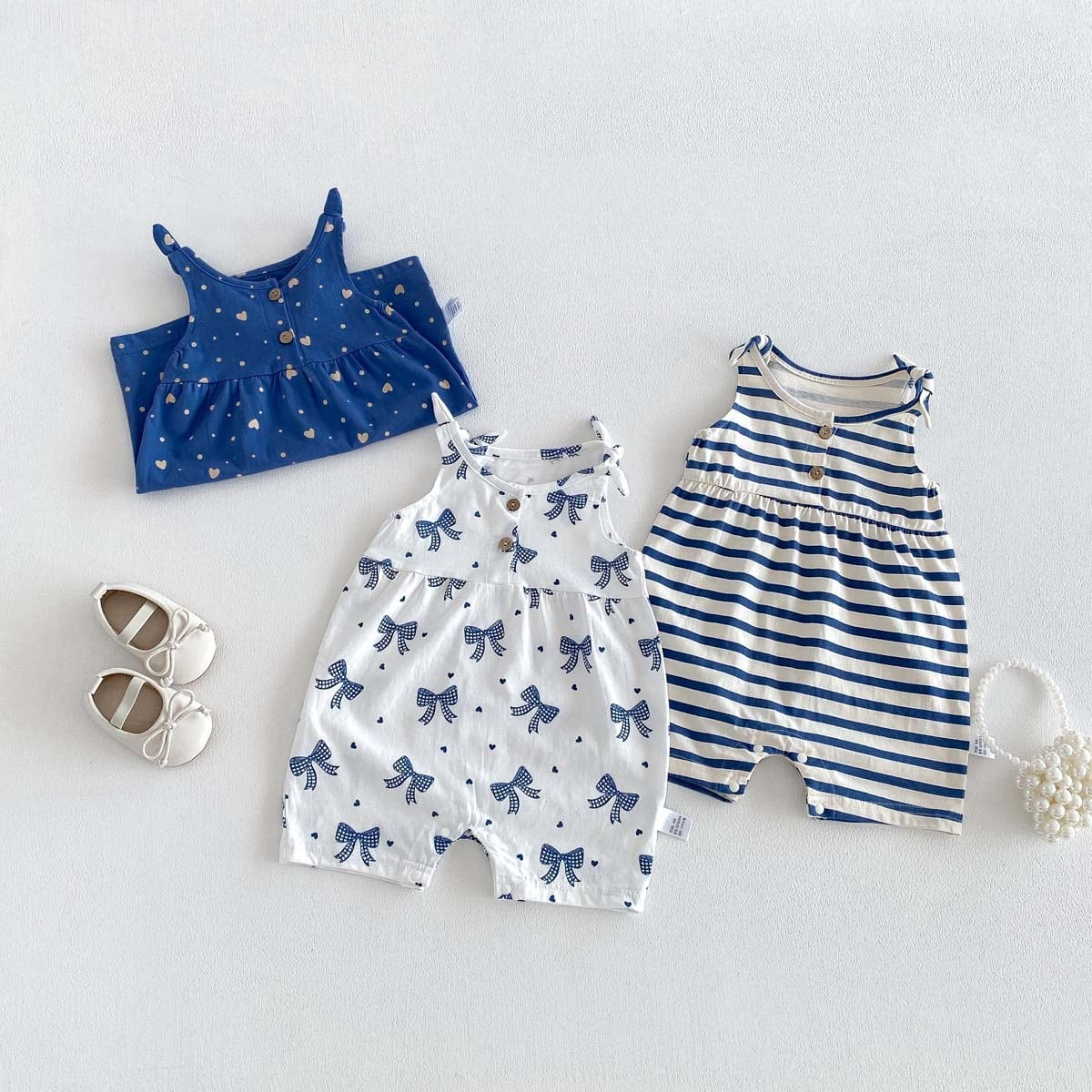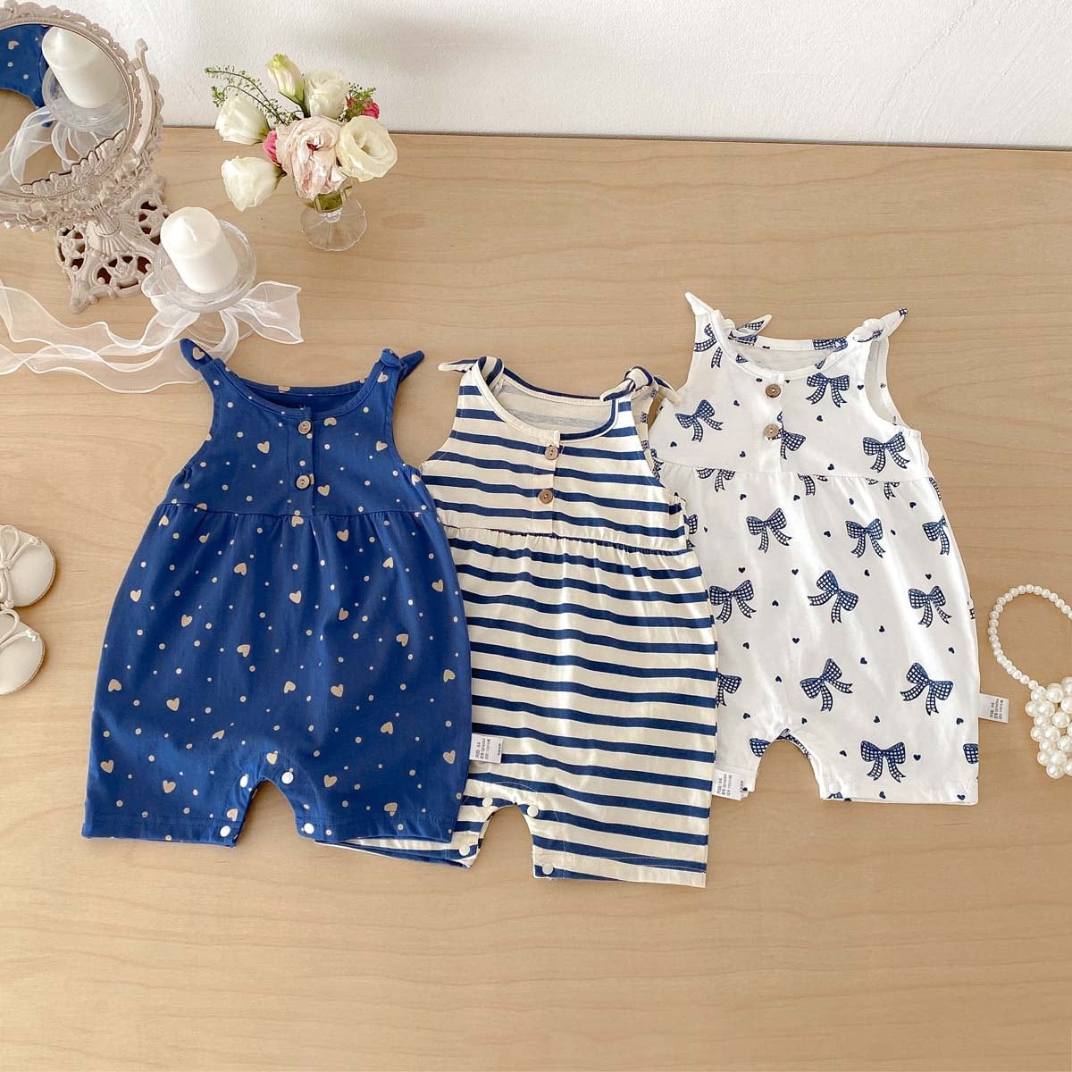【夏作】かわいいリボンORボーダーORハート柄 ロンパース