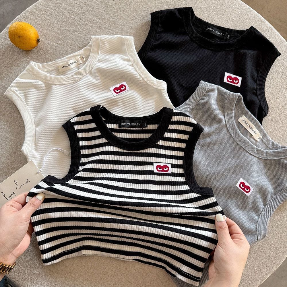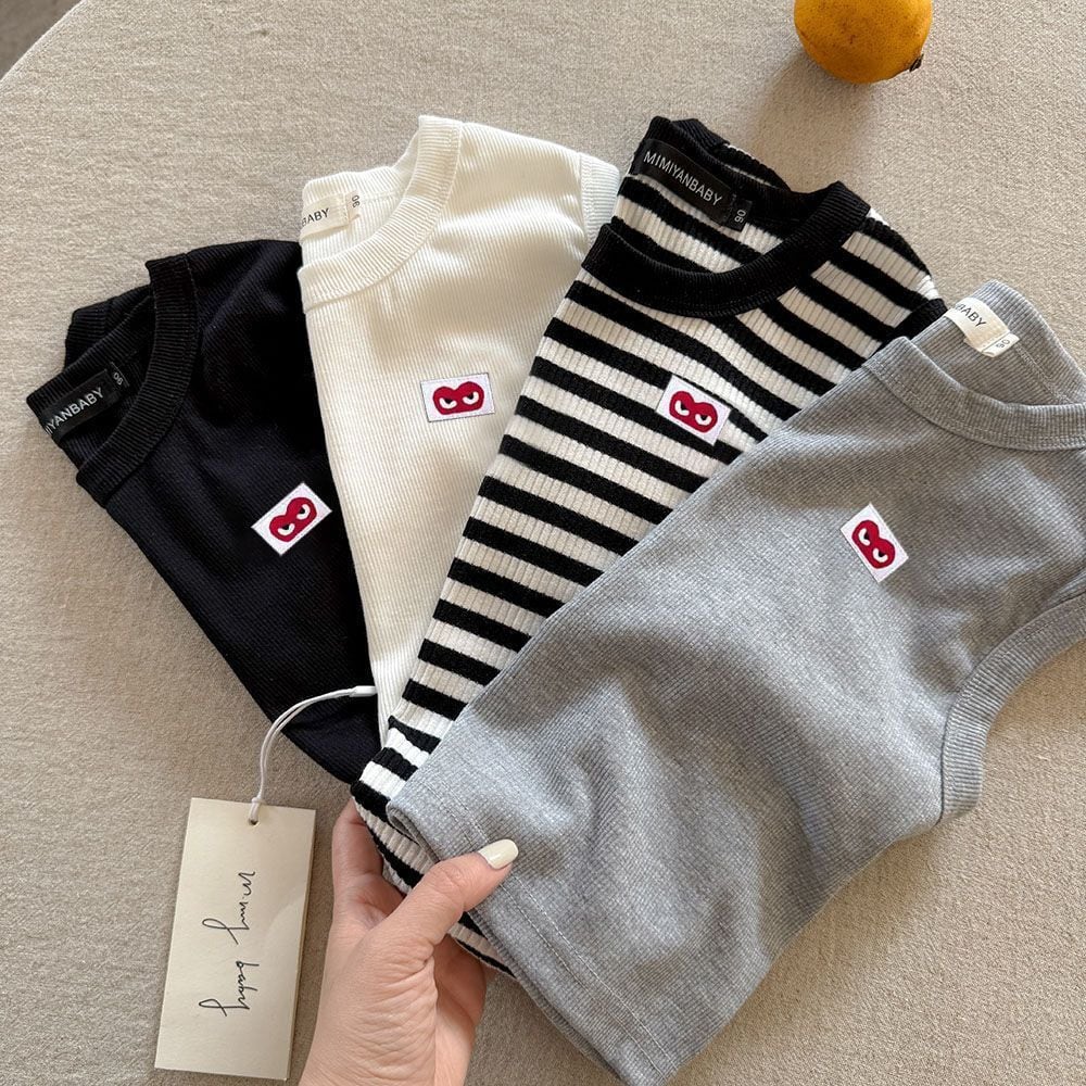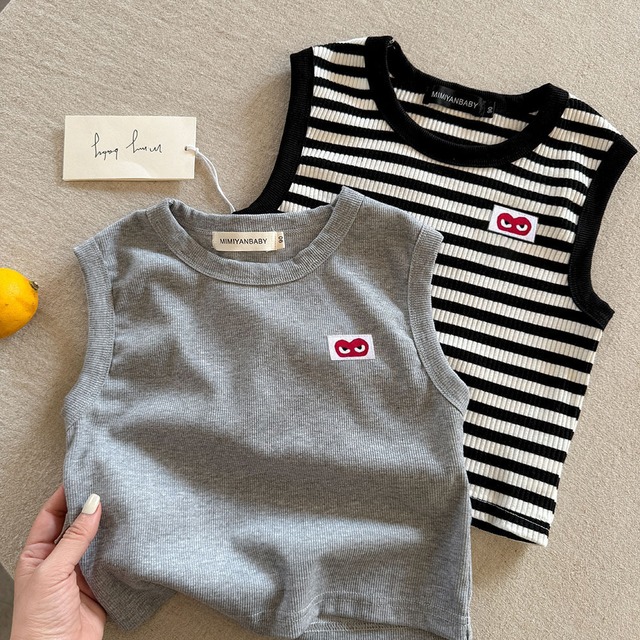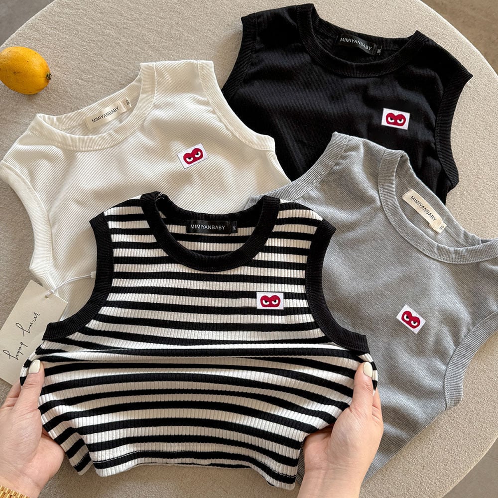 【80-120】夏作ハート柄ボーダーベスト 全4色