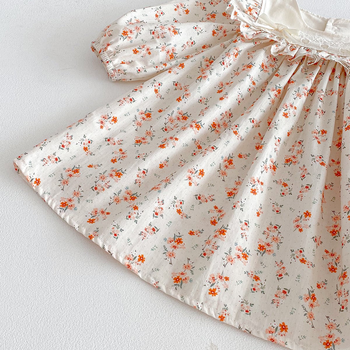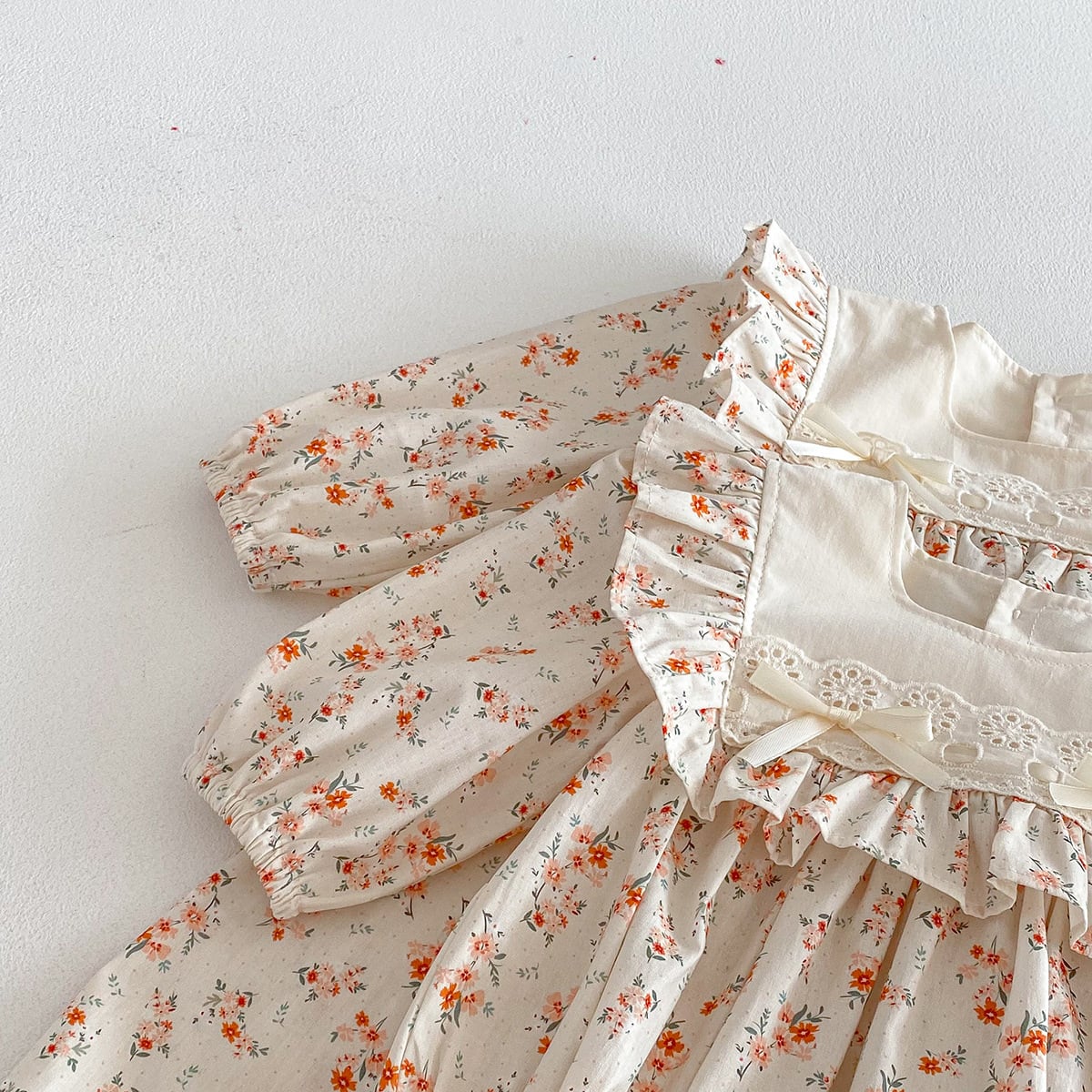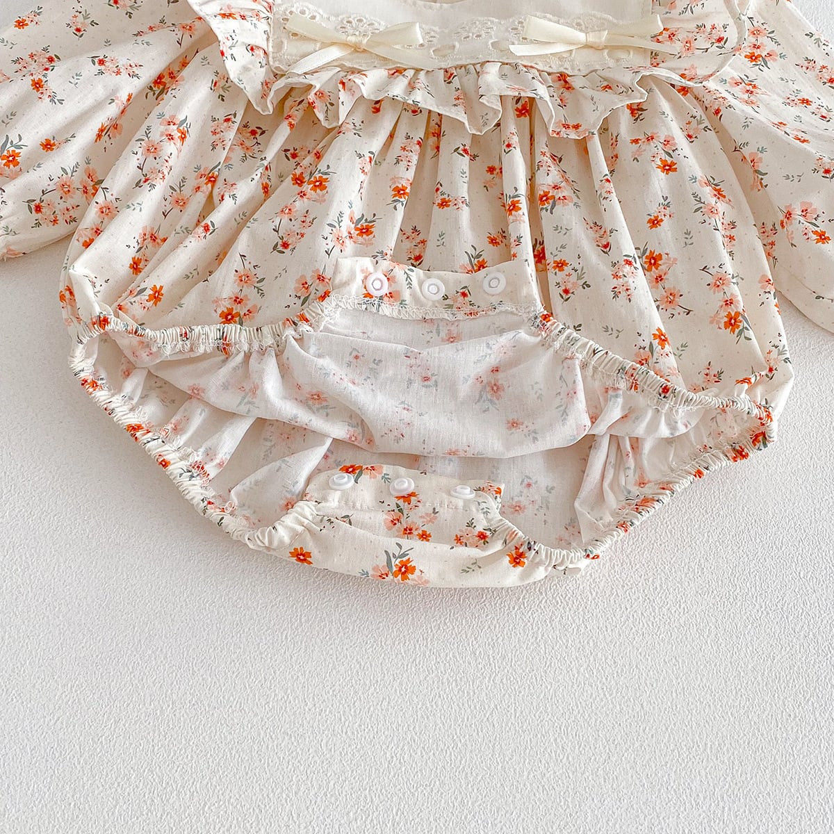 • 【52-80】夏作幼児安全基準リボンフリル ロンパース