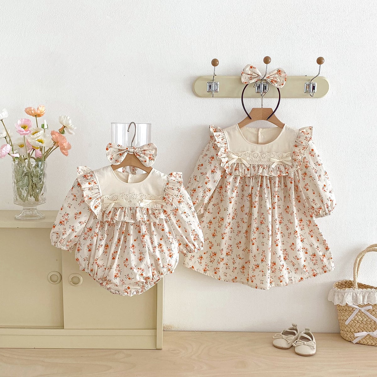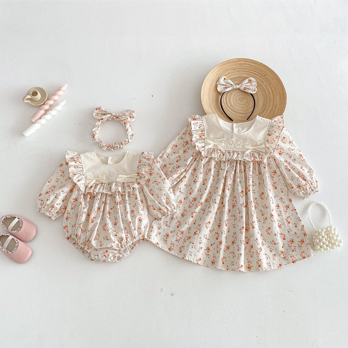 【66-140】春新作小花柄 ロンパース OR ワンピース