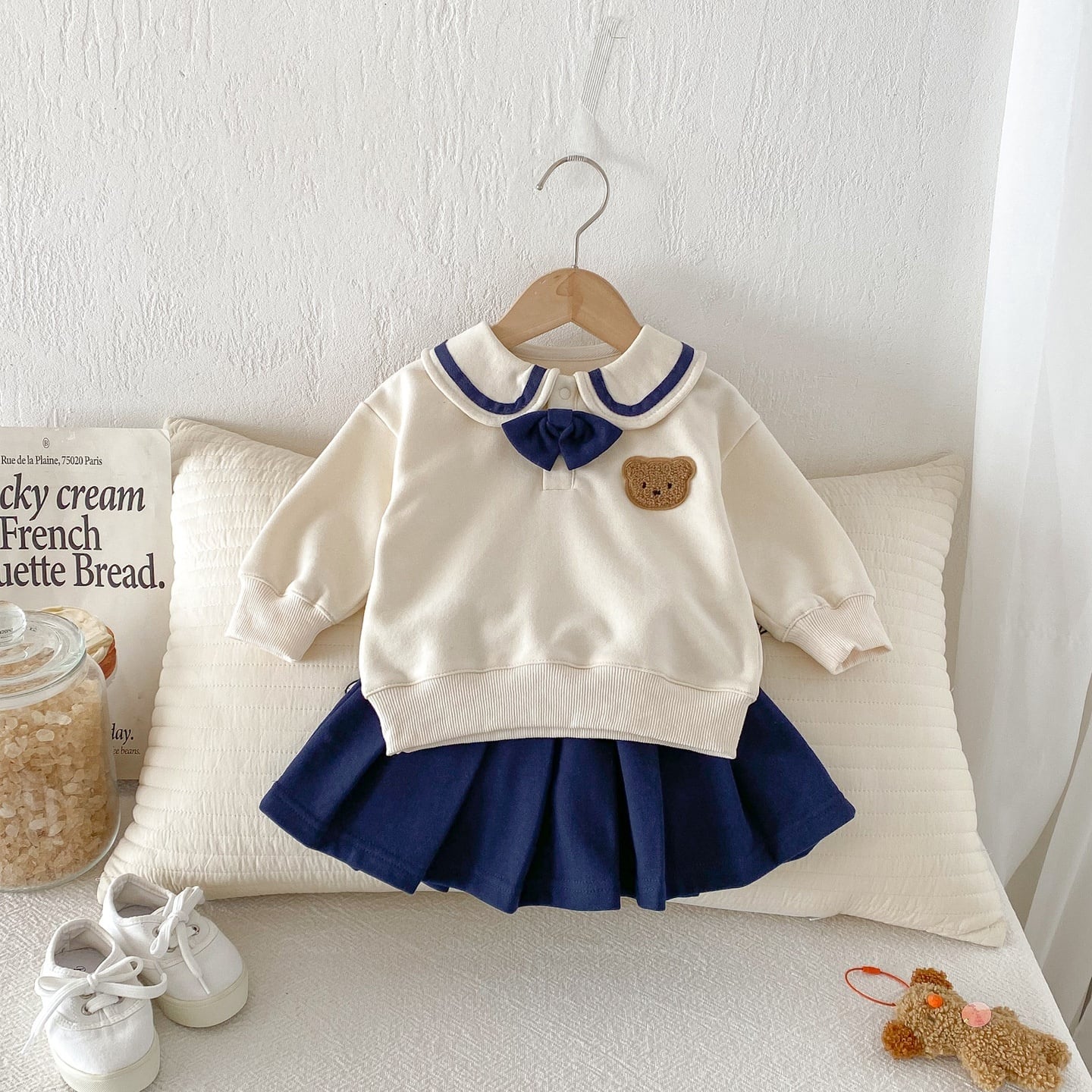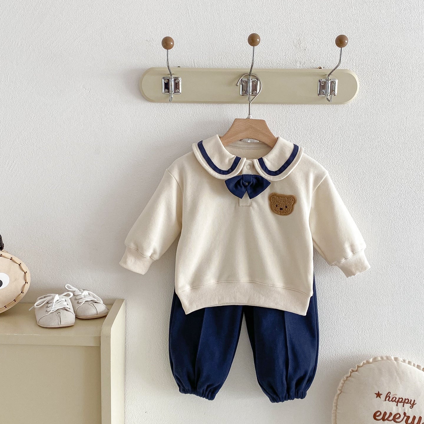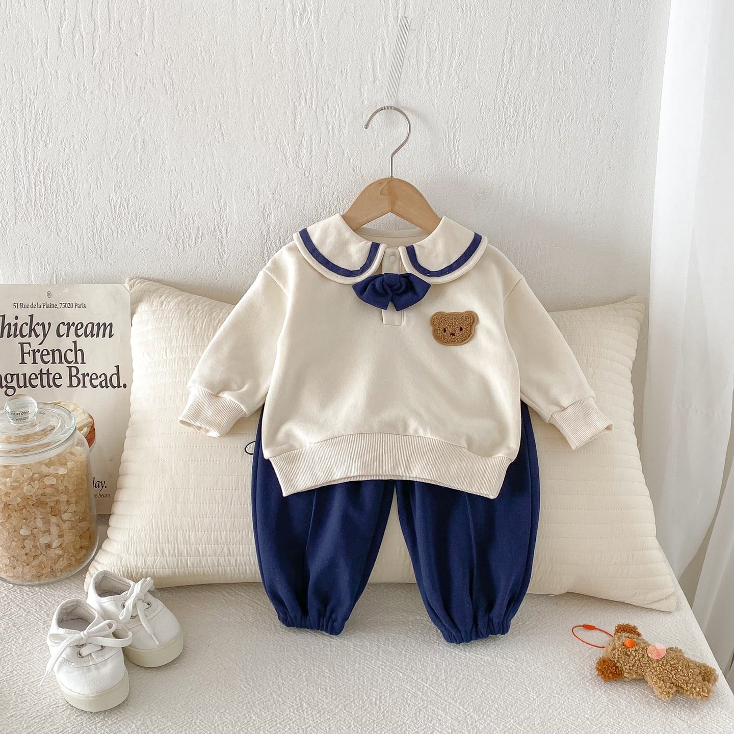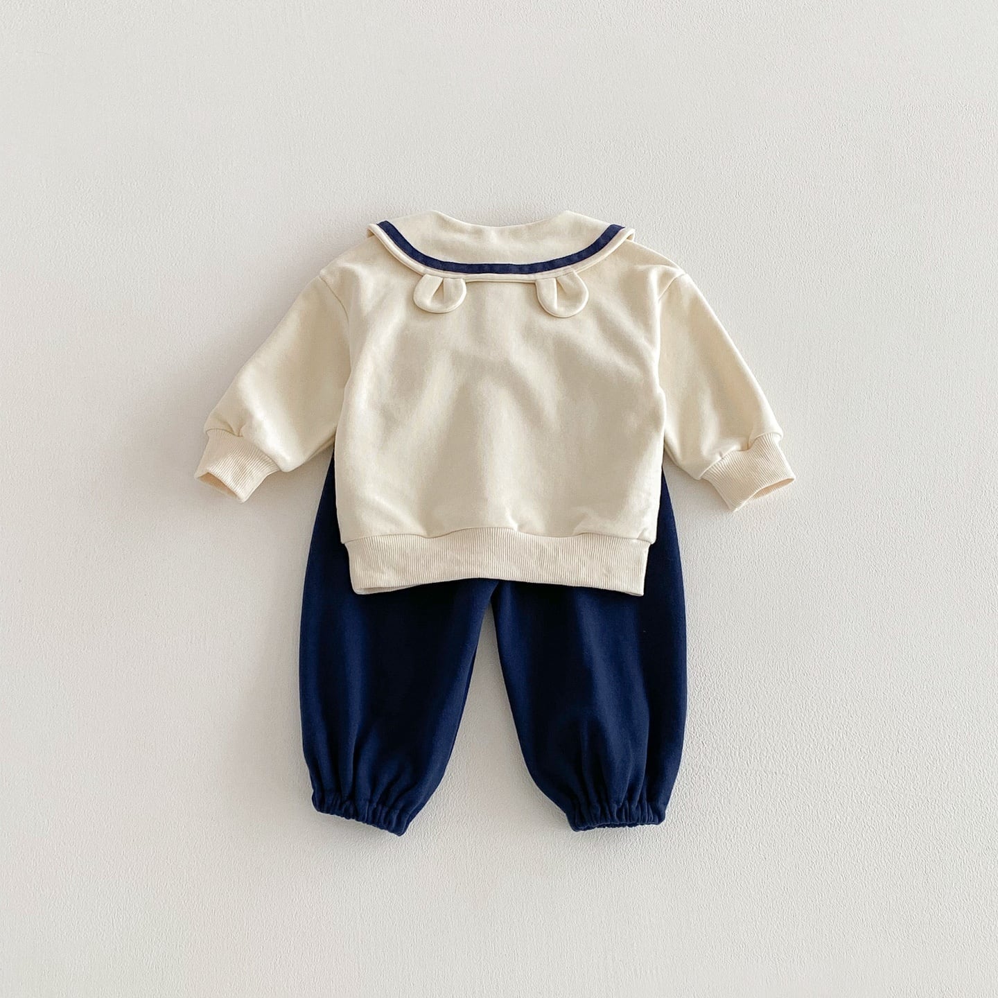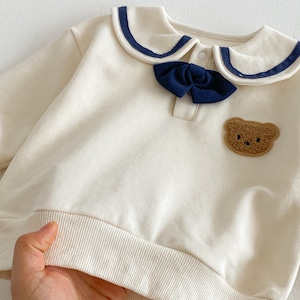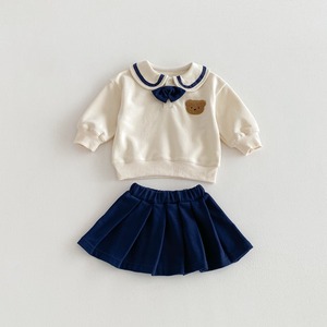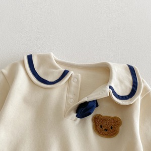 【73-110】春新作セーラー風バイカラー熊柄スウェット セットアップ
