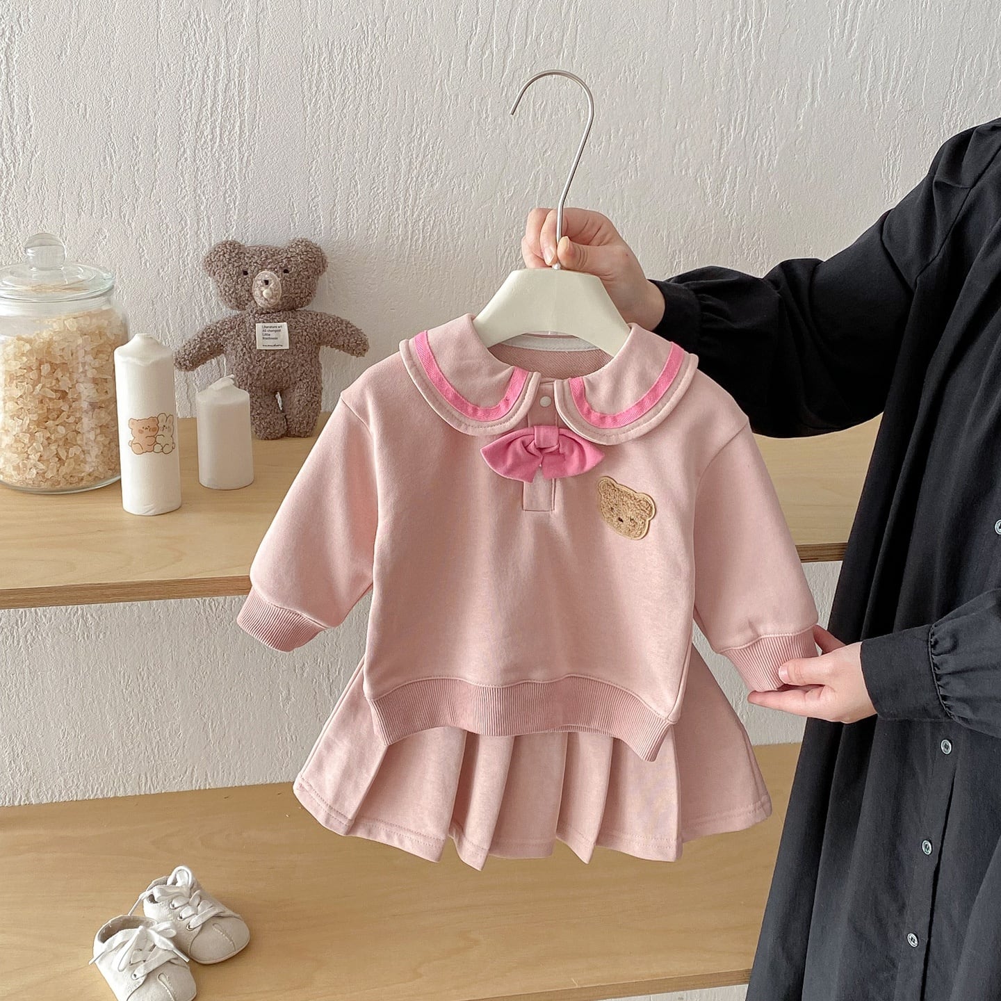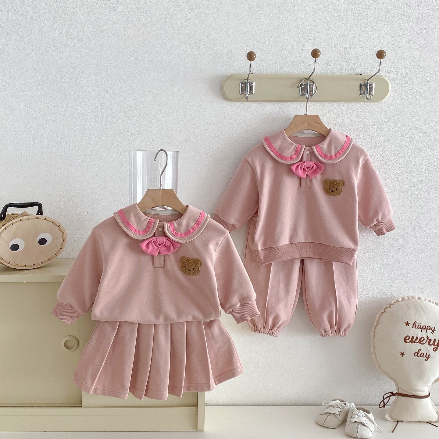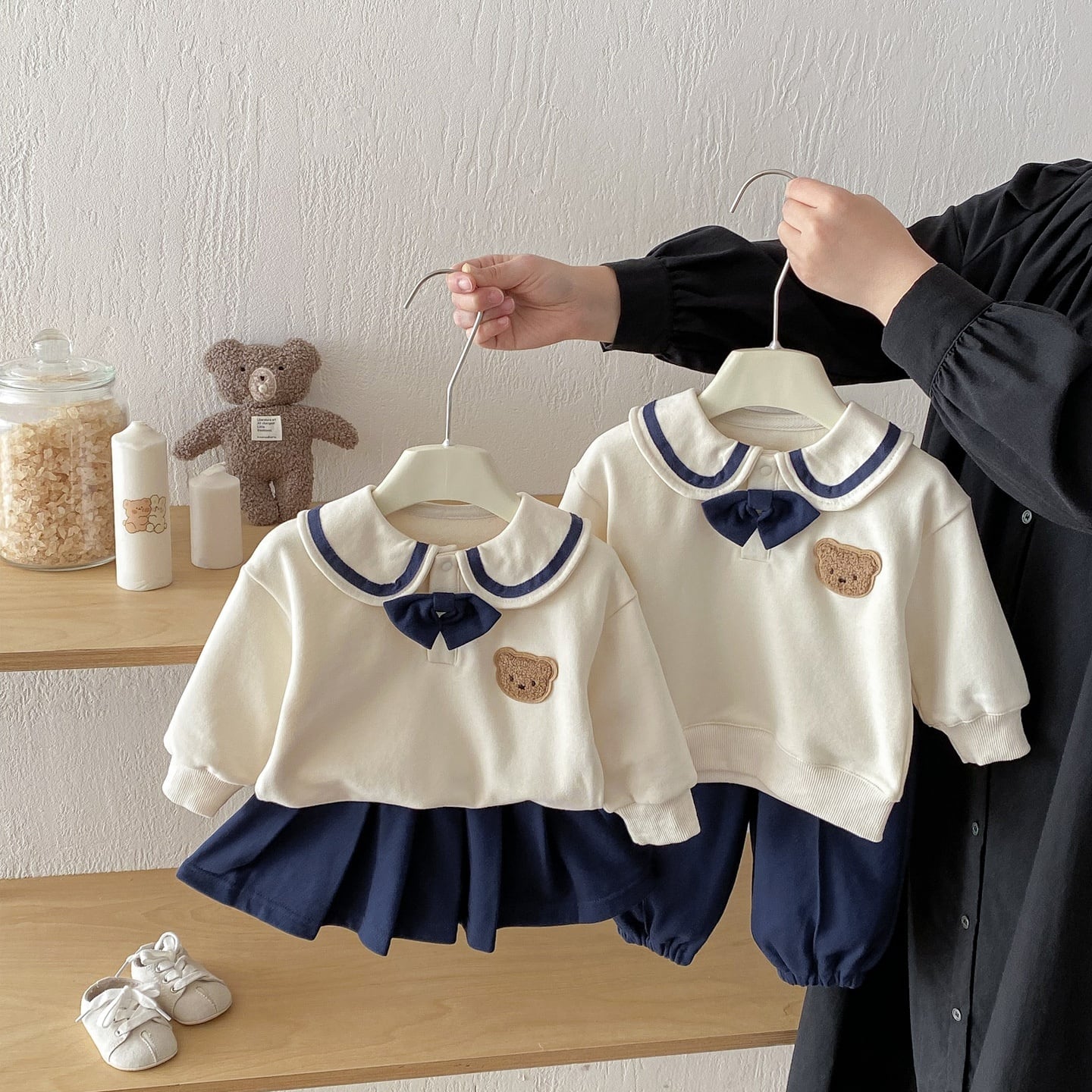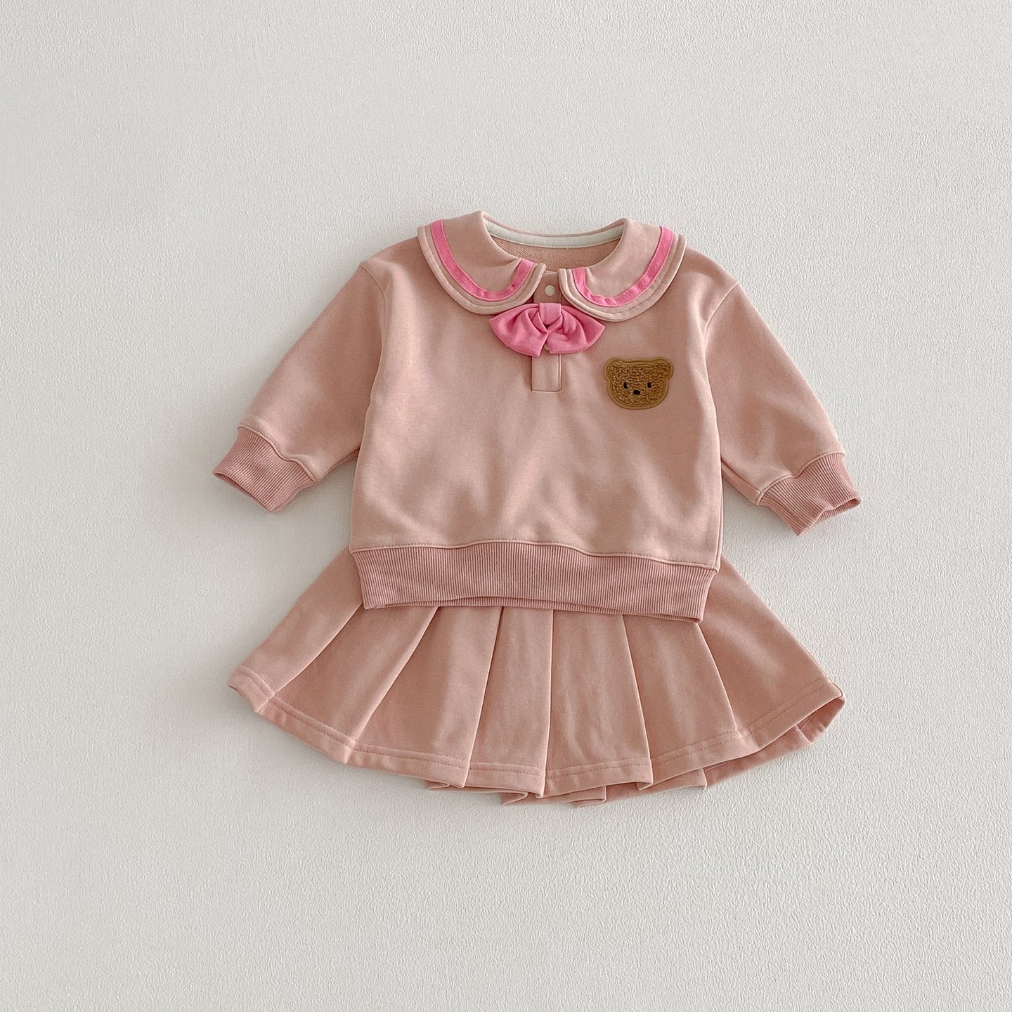 【73-110】春新作セーラー風バイカラー熊柄スウェット セットアップ
