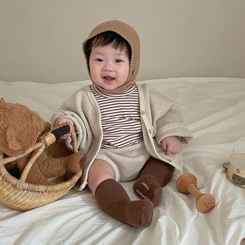 缺货【秋作】ワッフル子犬ロゴカーディガン&ボトムスセット