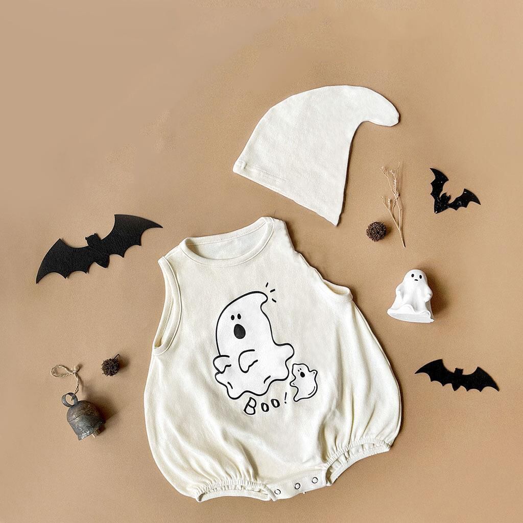 【秋作】ハロウィーンゴーストロゴノースリーブロンパース