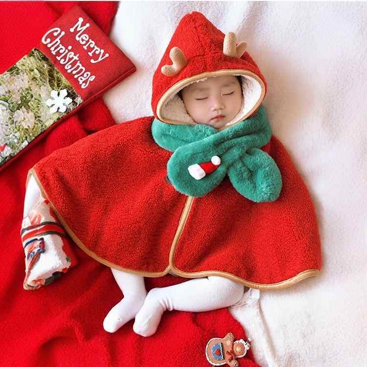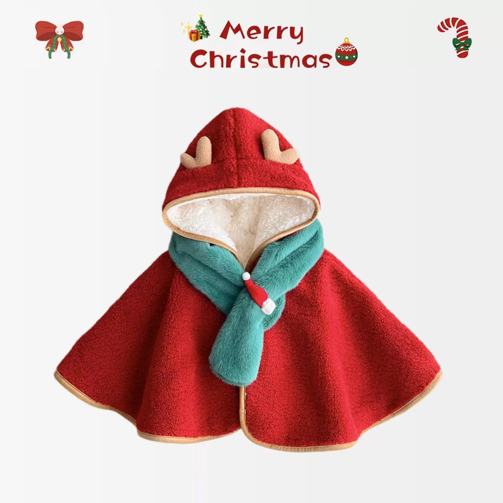 【冬作】クリスマススカーフ付きマント