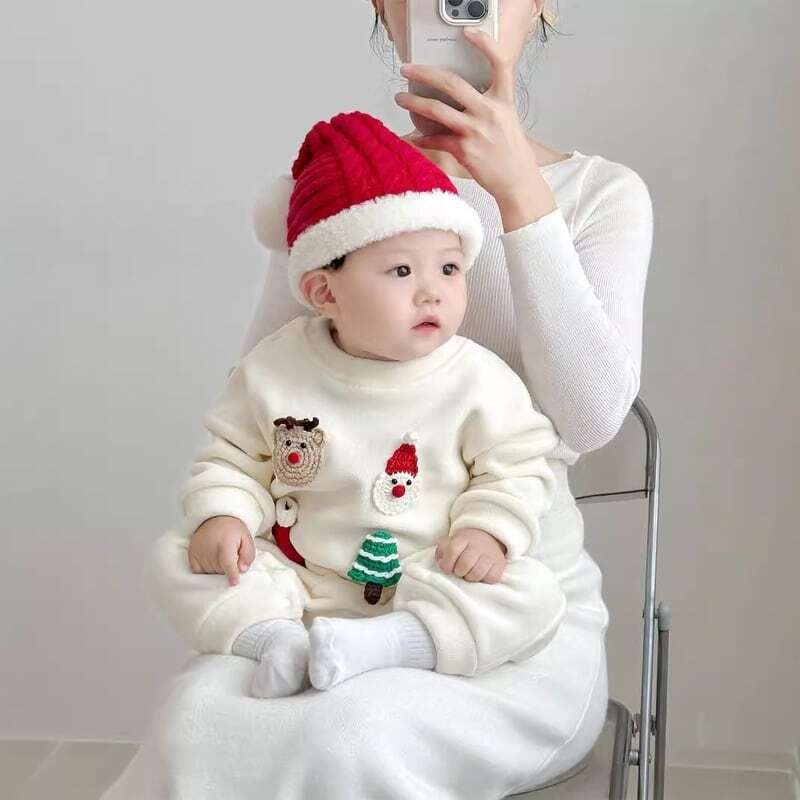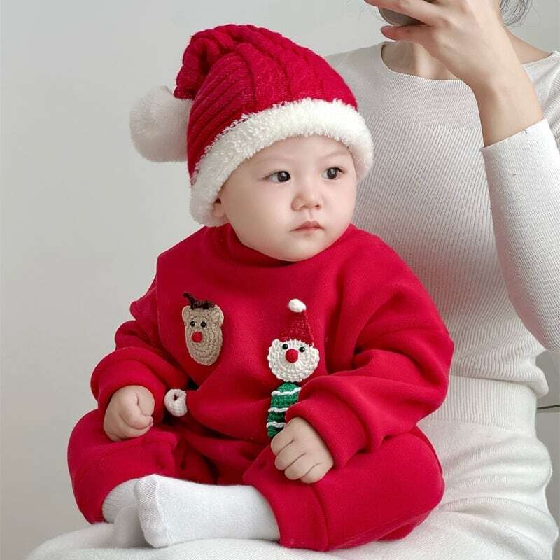 • 【冬作】クリスマス帽子付きサロペット 全2色