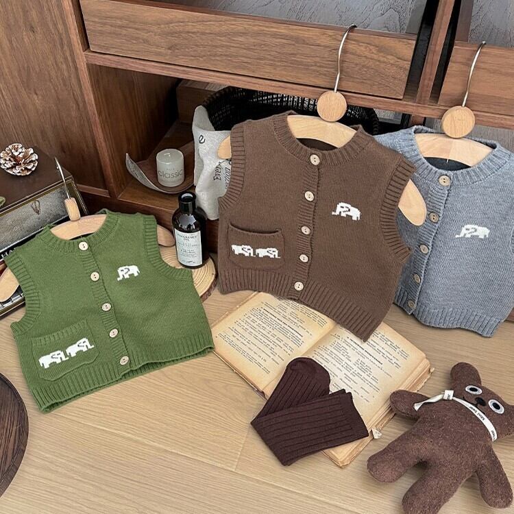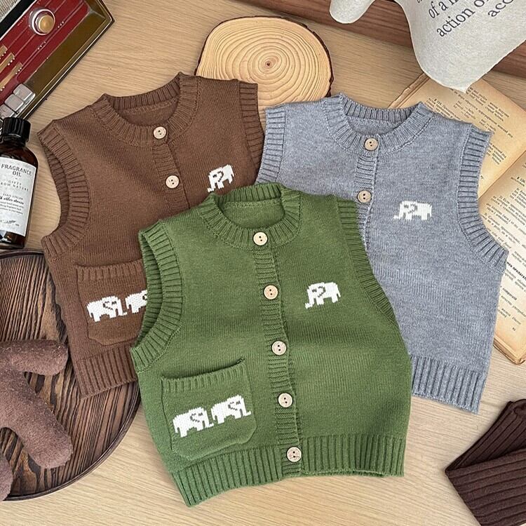 【秋作】動物デザインベスト 全3色