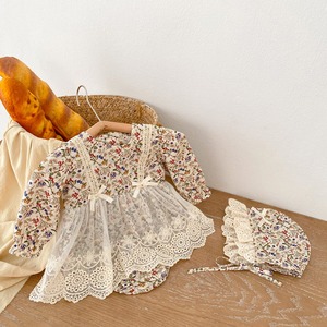【春作】ボンネット付きレースワンピース風小花柄ロンパース